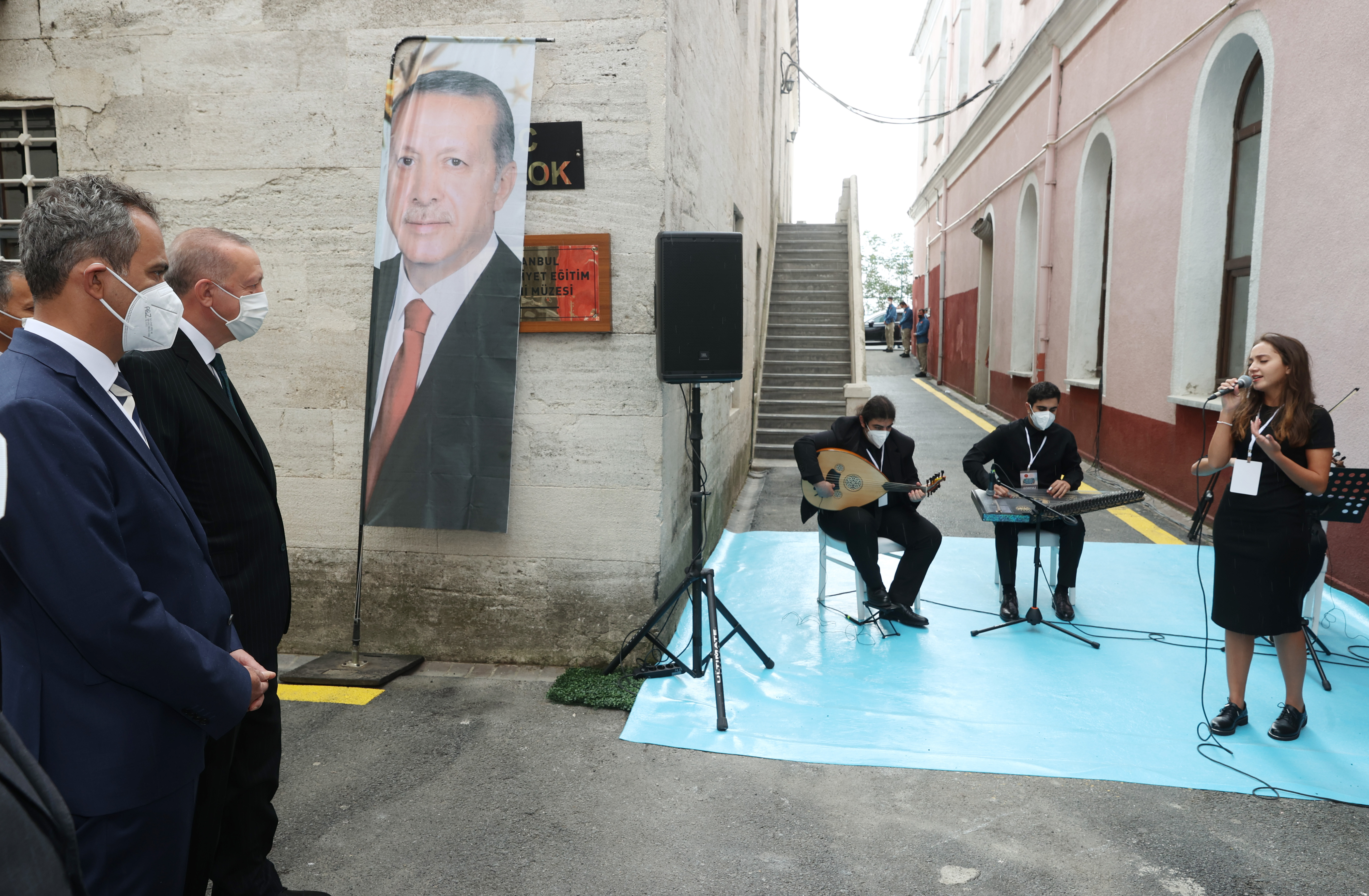 Cumhurbaşkanı Erdoğan, Sultanahmet Mesleki ve Teknik Anadolu Lisesi'nde 2021-2022 Eğitim Öğretim Yılı Açılış Programı'nda yaptığı konuşmada, yeni eğitim öğretim yılının öğrencilere, öğretmenlere, velilere, eğitim camiasına ve ülkeye hayırlı olmasını diledi.