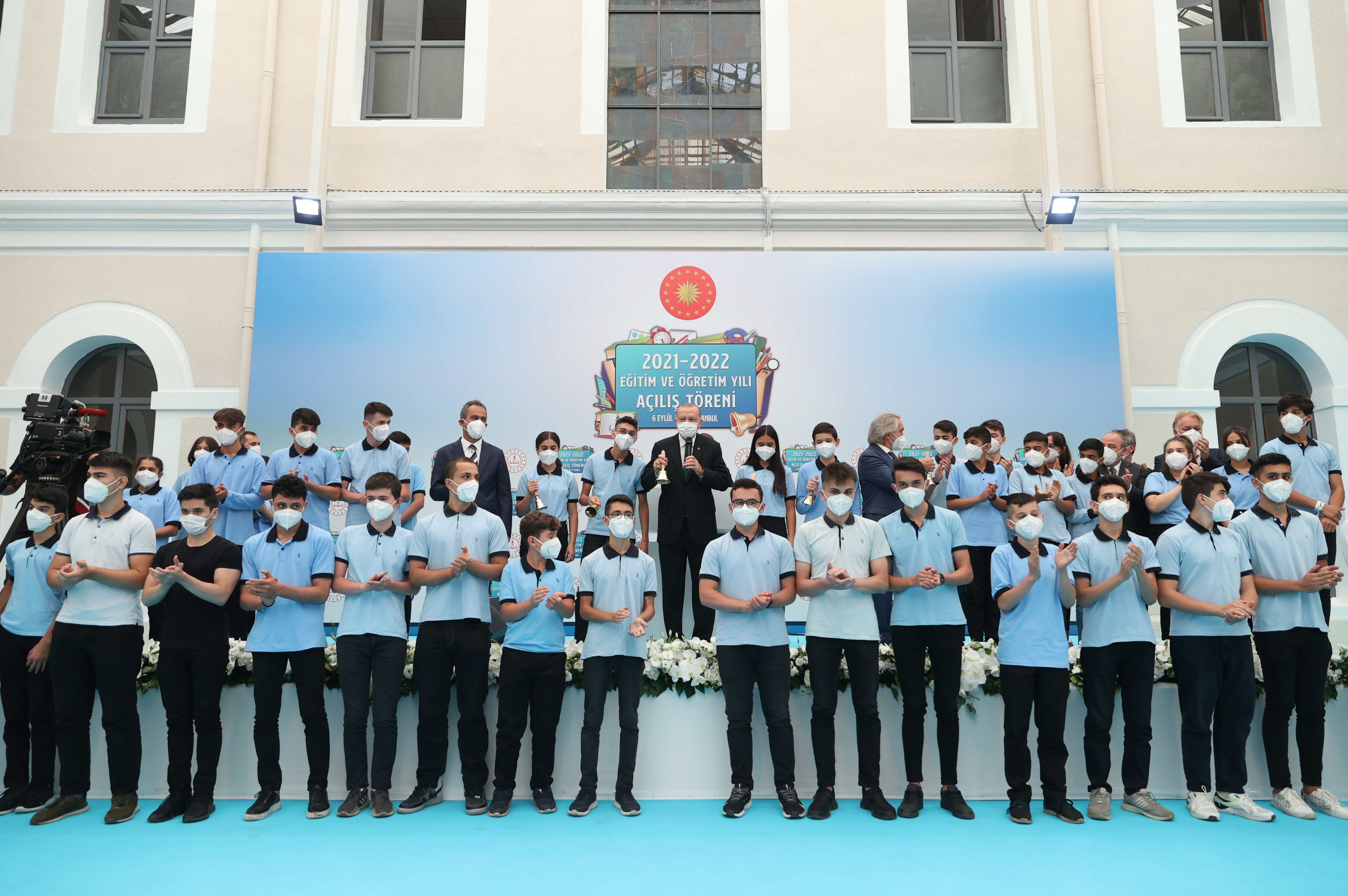 2021-2022 Eğitim Öğretim Yılı Açılış Programı’na Cumhurbaşkanı Erdoğan’ın yanı sıra Milli Eğitim Bakanı Mahmut Özer, Sanayi ve Teknoloji Bakanı Mustafa Varank, Cumhurbaşkanlığı İletişim Başkanı Fahrettin Altun, Cumhurbaşkanlığı Sözcüsü İbrahim Kalın, Cumhurbaşkanlığı Kültür ve Sanat Politikaları Kurulu Başkan Vekili ve yazar İskender Pala, İstanbul Valisi Ali Yerlikaya, AK Parti İstanbul İl Başkanı Osman Nuri Kabaktepe ve öğrenciler katıldı.