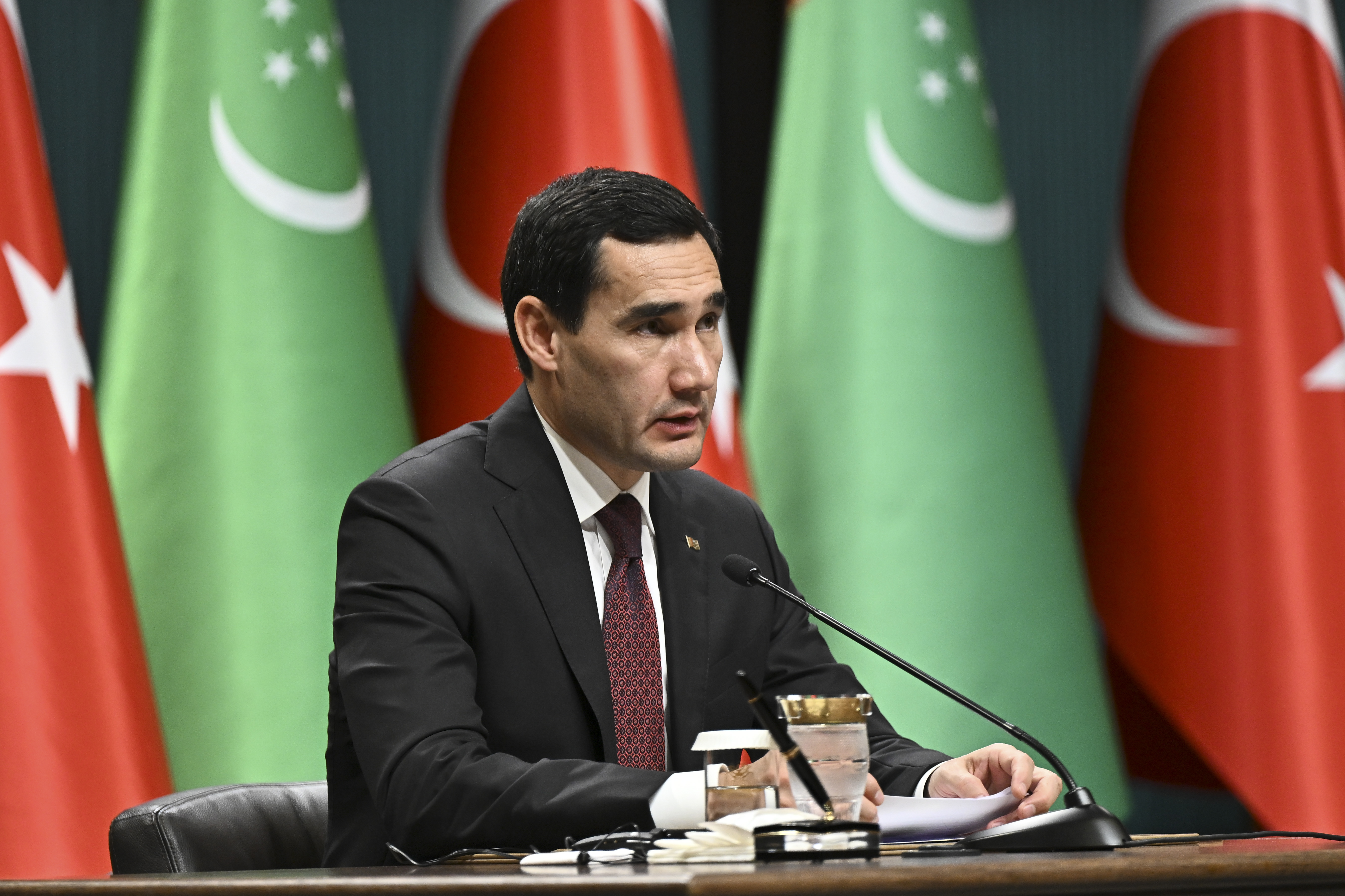 Türkmenistan Devlet Başkanı Berdimuhammedov, Cumhurbaşkanı Erdoğan ile Cumhurbaşkanlığı Külliyesi'nde yaptıkları görüşmenin ardından düzenlenen ortak basın toplantısında konuştu.