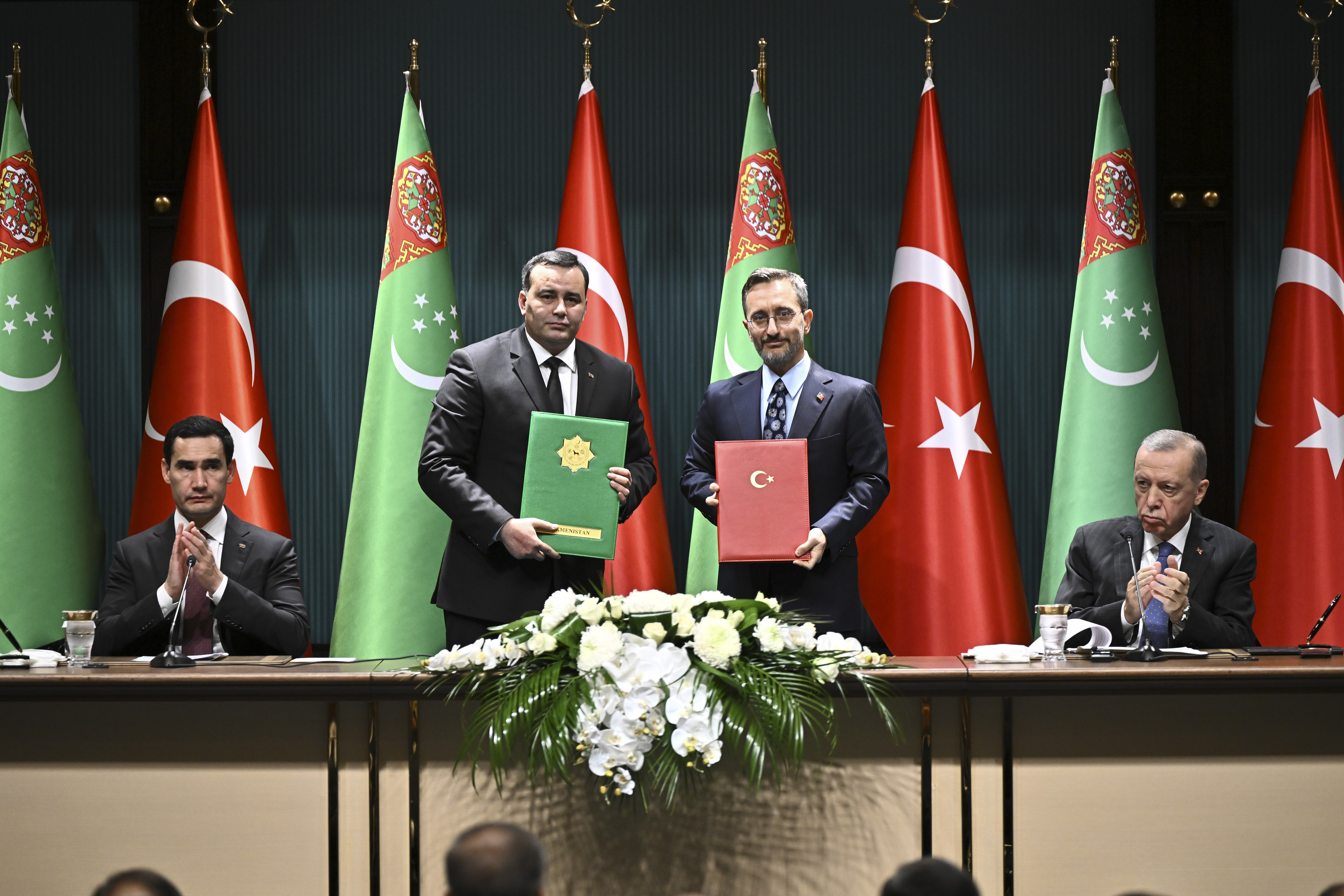 Cumhurbaşkanı Recep Tayyip Erdoğan ile Türkiye'ye resmî ziyarette bulunan Türkmenistan Devlet Başkanı Serdar Berdimuhammedov, baş başa ve heyetler arası görüşme gerçekleştirdi. Görüşmelerin ardından iki ülke arasında yapılan anlaşmaların imza töreni düzenlendi.