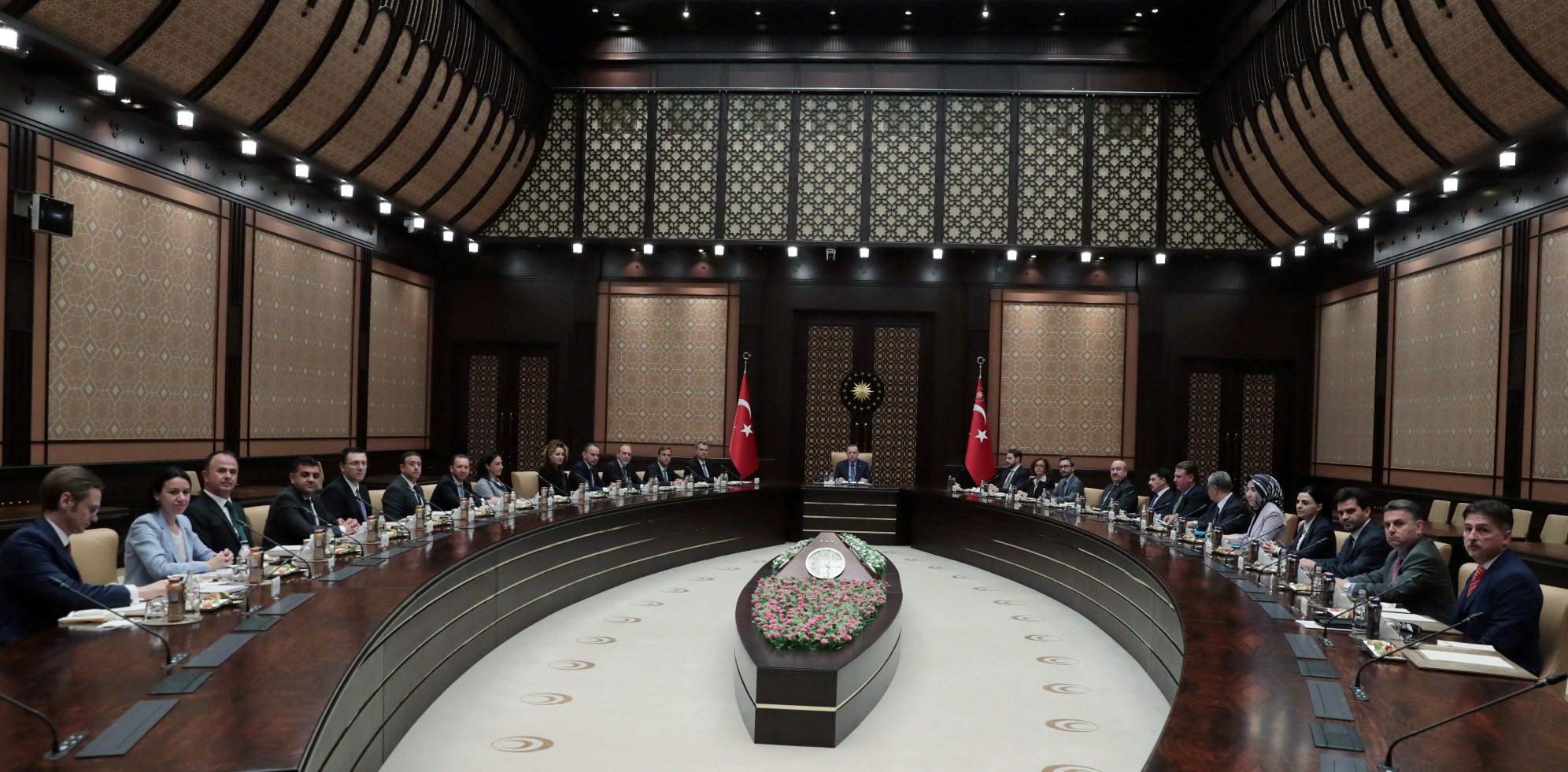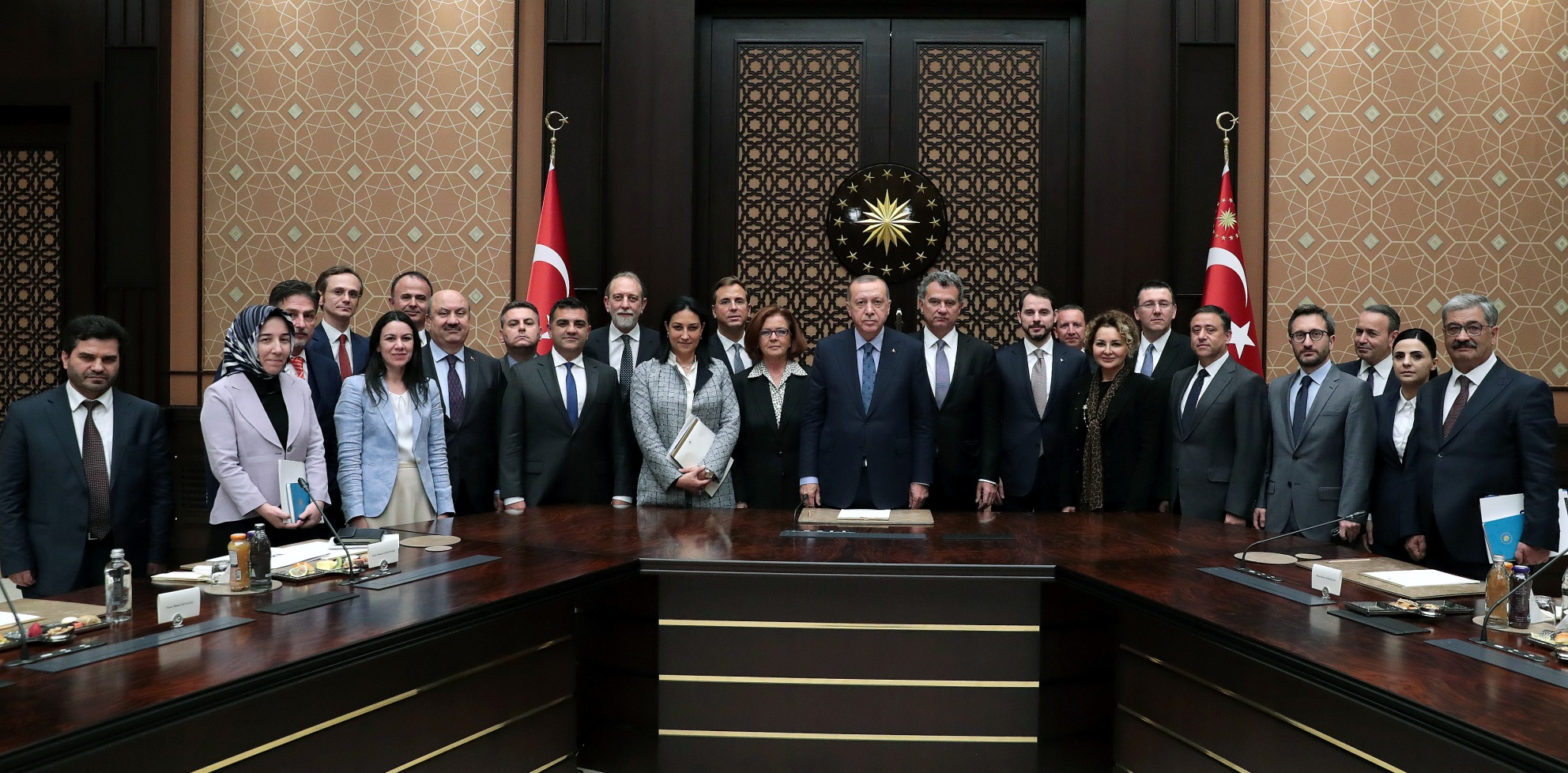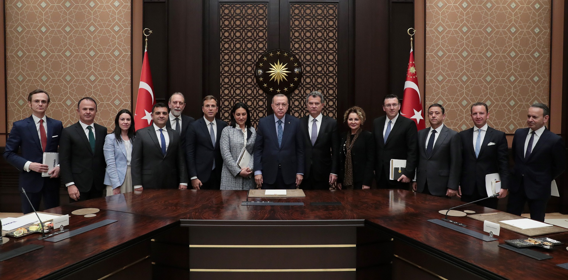 Cumhurbaşkanı Recep Tayyip Erdoğan, Cumhurbaşkanlığı Külliyesi'nde Türk Sanayicileri ve İş İnsanları Derneği (TÜSİAD) Yönetim Kurulu üyelerini kabul etti.