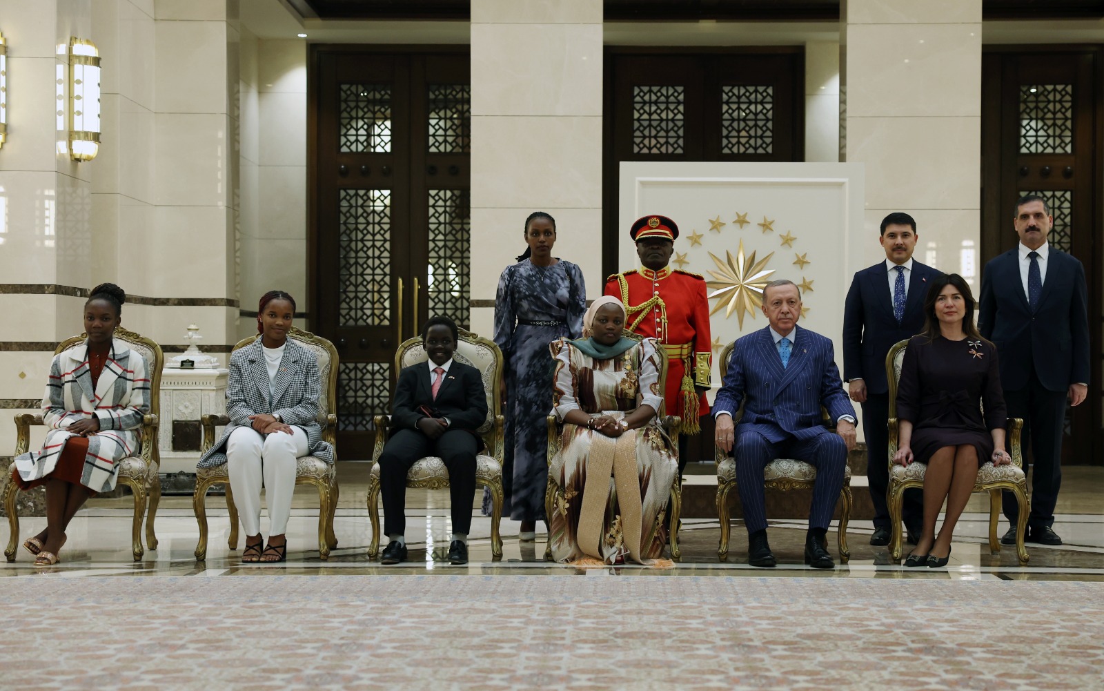 Büyükelçi Tiperu'nun, çocukları ve bazı büyükelçilik mensuplarını Cumhurbaşkanı Erdoğan'a takdiminin ardından hatıra fotoğrafı çektirildi.