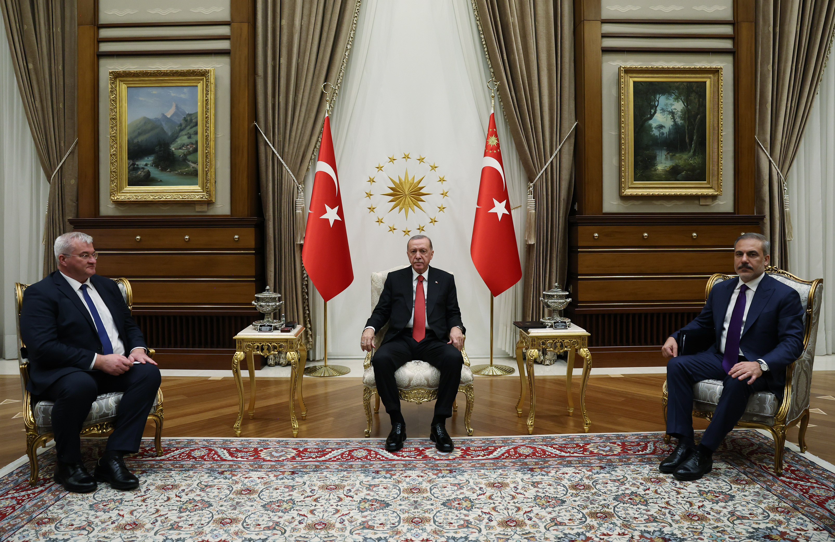 Cumhurbaşkanı Recep Tayyip Erdoğan, Ukrayna Dışişleri Bakanı Andrii Sybiha'yı kabul etti. Cumhurbaşkanlığı Külliyesi'ndeki kabulde, Dışişleri Bakanı Hakan Fidan da hazır bulundu.