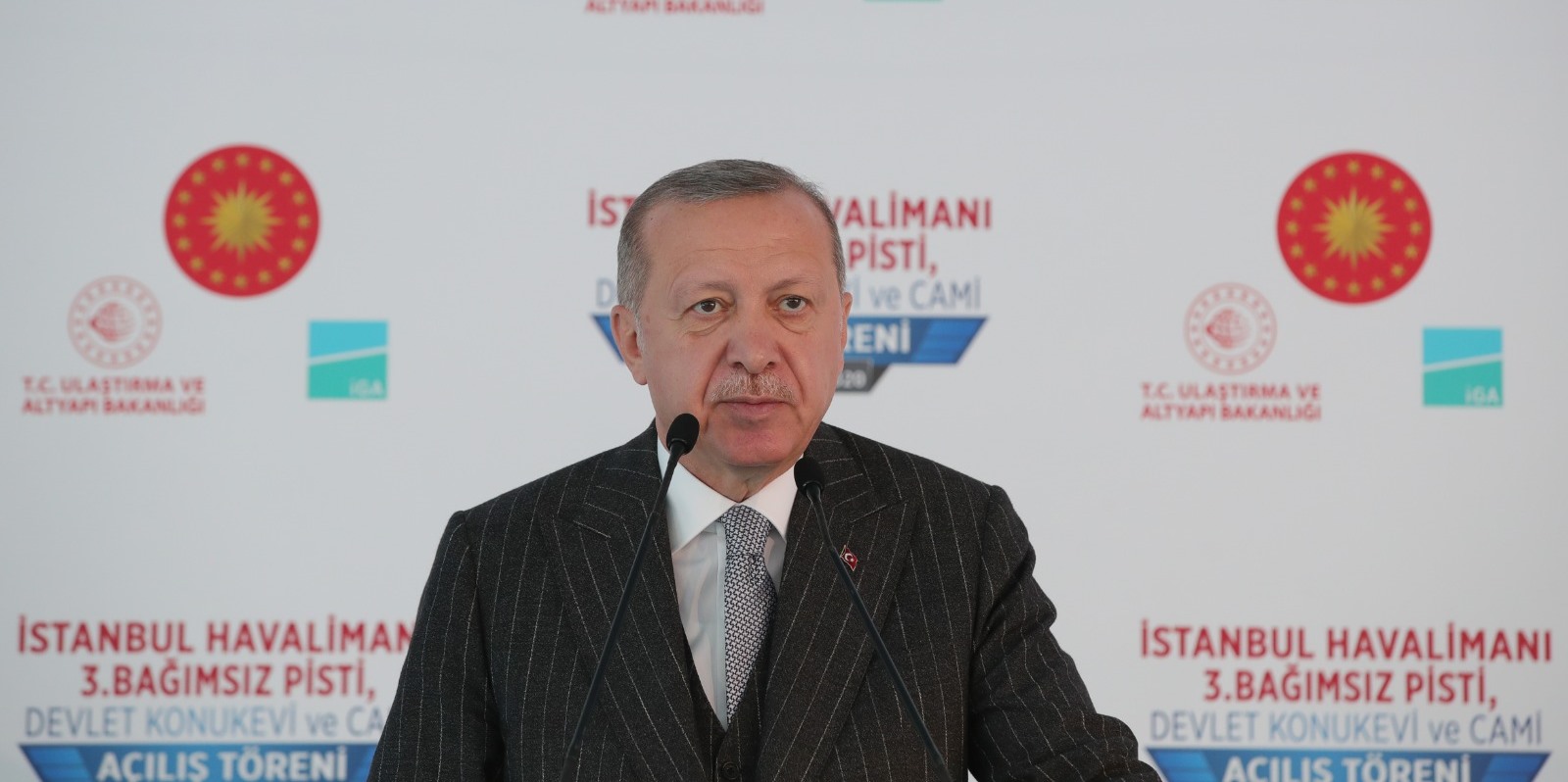 Erdoğan, İstanbul Havalimanının üçüncü pisti ve ikinci kulesiyle, Devlet Konukevi ve caminin hayırlı olmasını dileyerek, iftihar verici bir eserin yeni bölümlerinin Türkiye'ye kazandırılmasında emeği geçenleri tebrik etti.