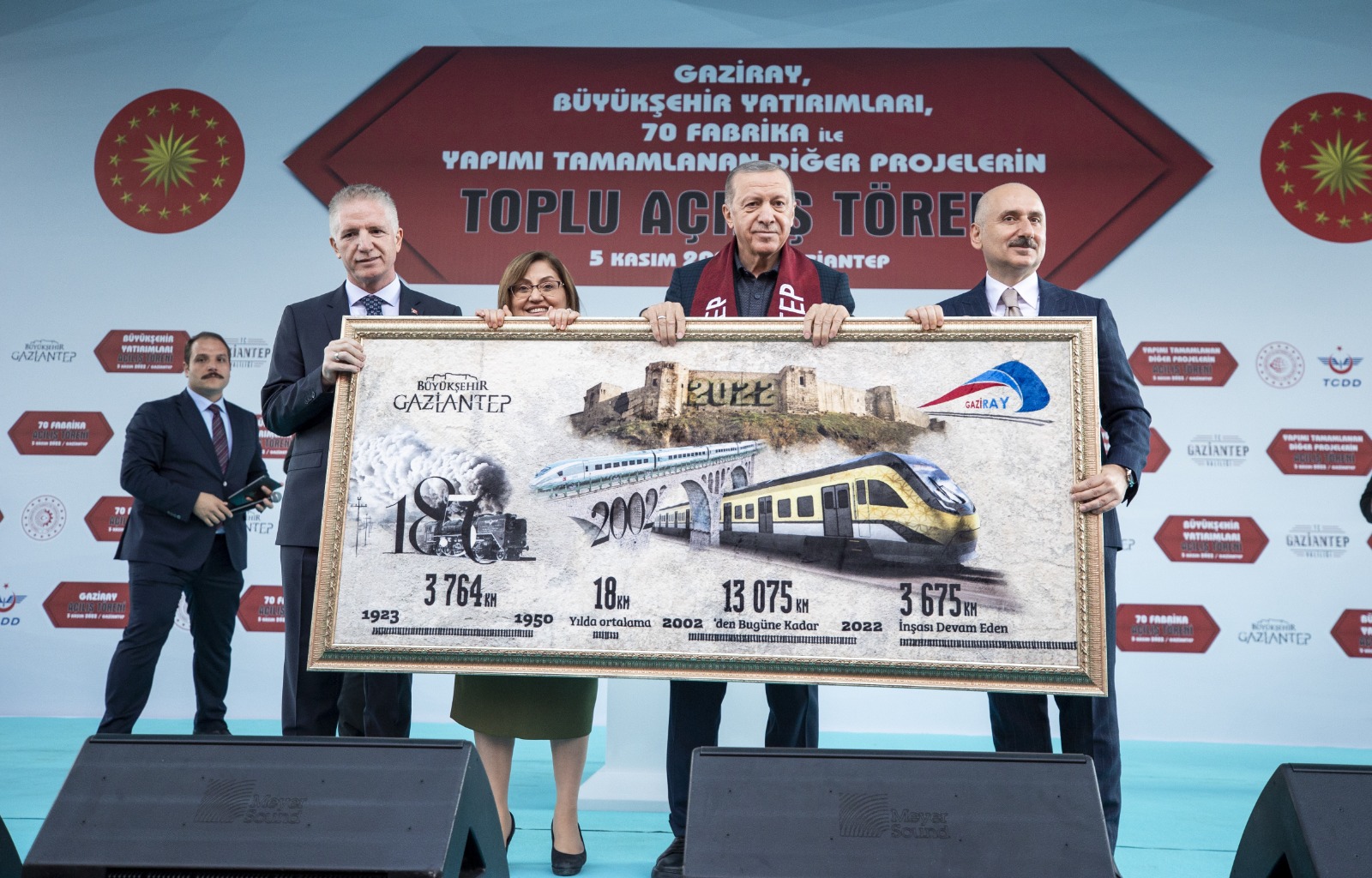 Güzergâh uzunluğu 25,5 kilometre olan Gaziray'ın gelişen ve büyüyen Gaziantep'in şehir içi ulaşım ihtiyacının karşılanmasına büyük katkısı olacağını kaydeden Cumhurbaşkanı Erdoğan, "Bünyesinde 16 istasyon var. 3 tünel, bir köprü, 12 alt ve üst geçidiyle gerçekten tarihi bir yatırım olan Gaziray'ın şehrimize kazandırılması sürecinde yaşanan sıkıntıların, ortaya çıkan esere değdiğine inanıyorum." dedi.