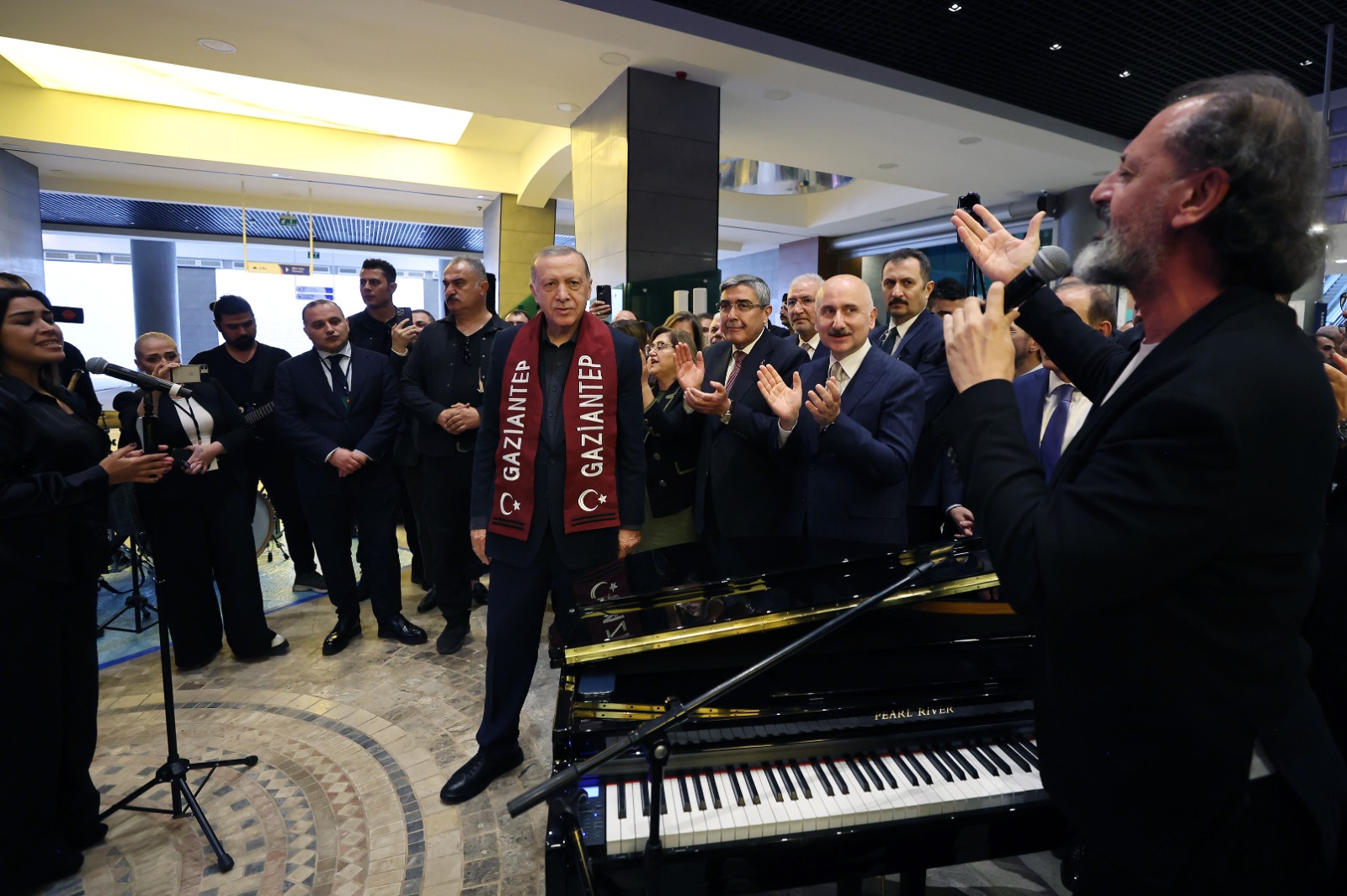 Cumhurbaşkanı Erdoğan, Gaziantep İstasyonu'na gelişinde Yücel Arzen ve orkestrasının verdiği mini konseri dinledi, fotoğraf çektirdi.