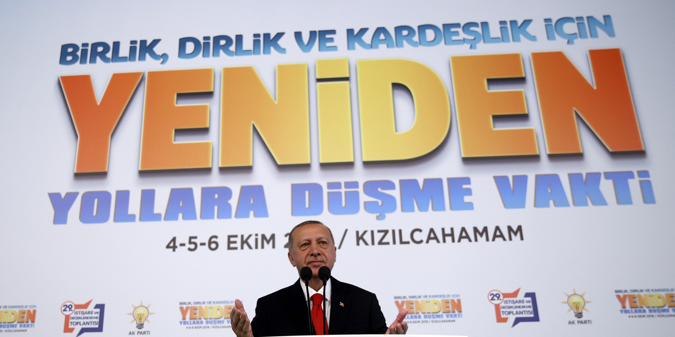 "Biz de kendi göbeğimizi kendimiz kesmeye karar verdik. İki ayrı harekatla toplam 4 bin kilometrekarelik bir alanı terör örgütlerinden temizledik. Fırat'ın doğusuyla ilgili de muhataplarımıza her türlü ikazı yaptık. Yeteri kadar da sabırla davrandık. Kara devriyesiymiş, hava devriyesiymiş bütün bunların hikaye olduğunu görüyoruz. Müttefiklerimize sorumuz gayet açıktır, siz SDG adıyla gözlerden kaçırmaya çalıştığınız PKK/YPG'yi terör örgütü olarak tanıyor musunuz, tanımıyor musunuz? Bunu açıklayın. Bu yönde bir beyan duymadığımız gibi bazı Amerikalı yetkililer alenen PKK, YPG'nin birlikte çalıştıkları bir yapı olduğunu da söylüyorlar. Öyleyse sözün bittiği yerdeyiz. Evet ülkemizi terör örgütünden uzak tutmak için sürekli yüzümüze gülen, sürekli diplomatik söz oyunlarıyla kendilerince oyalayanlara diyoruz ki 'artık söz bitti.' Bir taraftan Irak tarafından 30 bin civarında tırı Suriye'ye sokacaksınız; silah, mühimmat, araç gereç yüklü ve bunları bu terör örgütlerine teslim edeceksiniz ondan sonra da 'biz sizinle stratejik ortağız diyeceksiniz.' Kusura bakmayın bunu yutmayız.