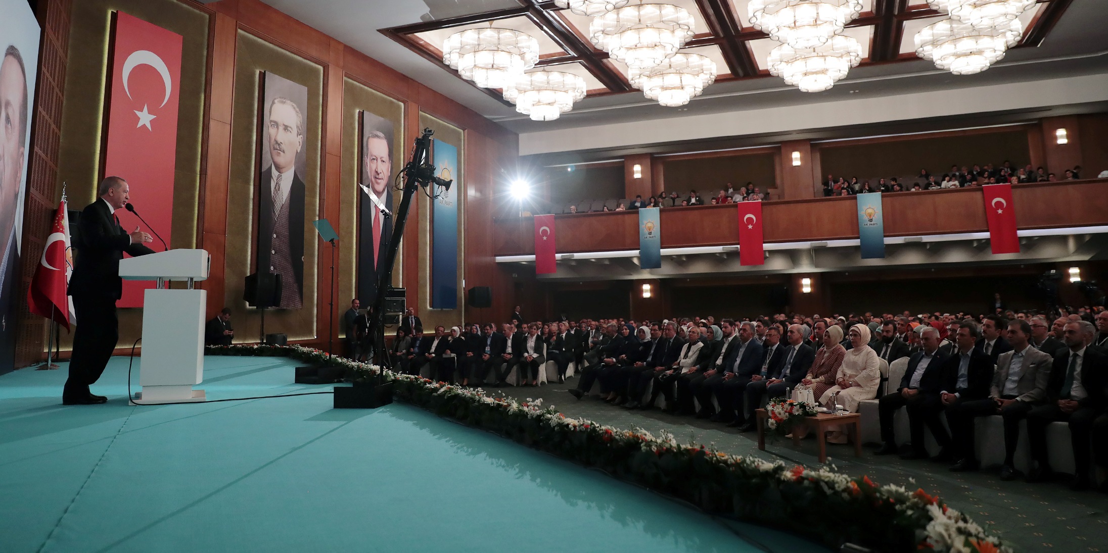 Dünya değişirken, Türkiye değişirken AK Parti'nin yerinde saymayacağını belirten Erdoğan, "Ülkemizi bugünlere getiren parti olarak milletimizin geleceğe ilişkin beklentilerinin de tek adresi Allah'ın izniyle yine biz olacağız. Hiç endişeniz olmasın. Bunun için 24 Haziran ve 31 Mart seçim sonuçlarını da göz önünde bulundurarak partimiz ve ülkemiz için en doğru adımları atmakta kararlıyız. Kongrelerimizde bu kararlılığımızın somut tezahürlerini ortaya koyacağız." değerlendirmesinde bulundu.