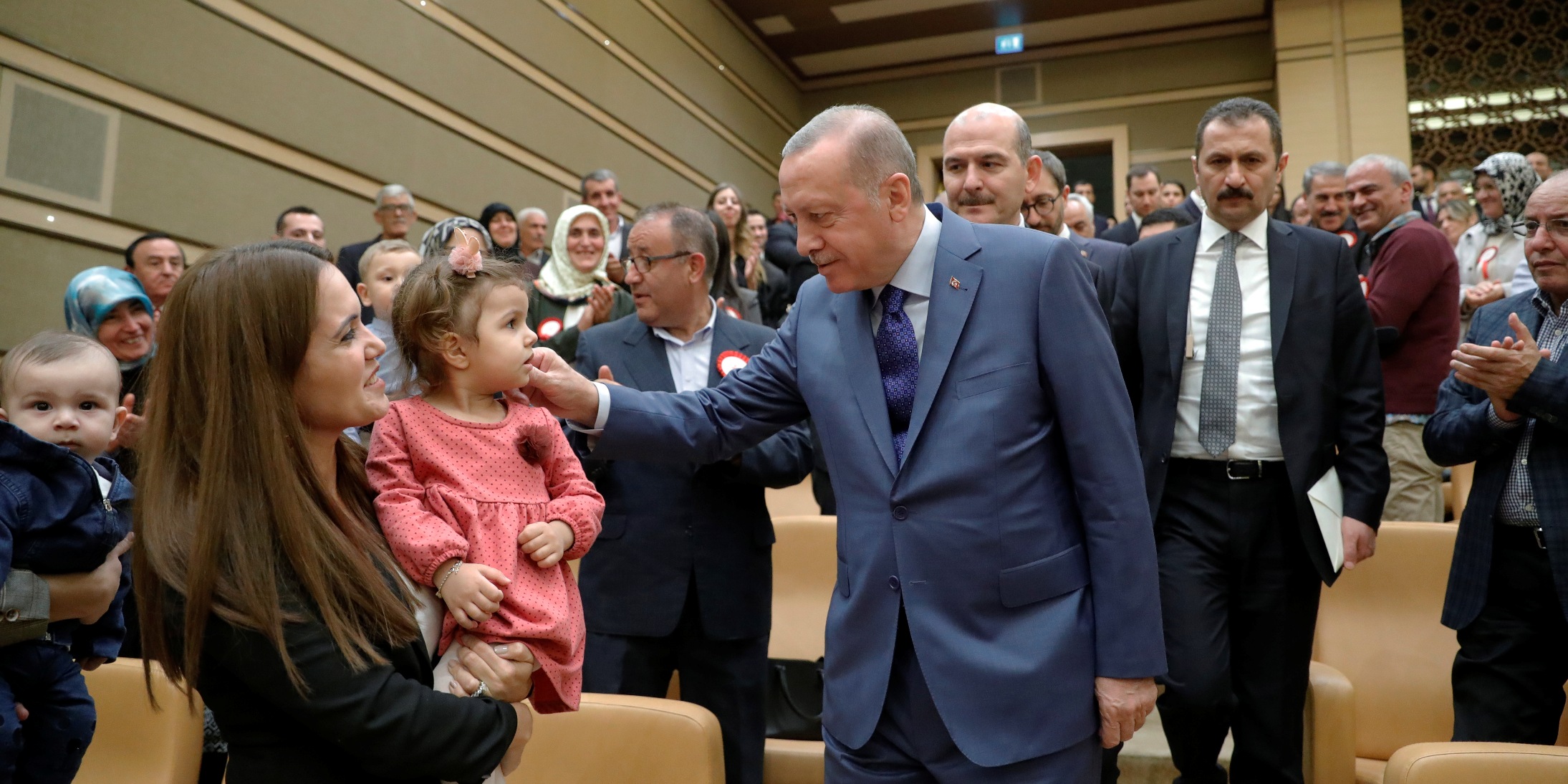 "Türkiye, Barış Pınarı Harekatı aşamasına işte böyle bir sürecin sonunda geldi. Afrin'i teröristlerden temizlediğimiz günden beri Fırat'ın doğusundaki terör oluşumuna izin vermeyeceğimizi her platformda ve en yüksek sesle belki yüzlerce defa anlattık. Bir şeye üzülüyoruz, o da nedir biliyor musunuz? Devasa ülkelerin liderleri, bu teröristlerin başlarını yanlarına alıyorlar, onlarla masaya oturuyorlar, onlarla bu sorunu çözmeye çalışıyorlar.