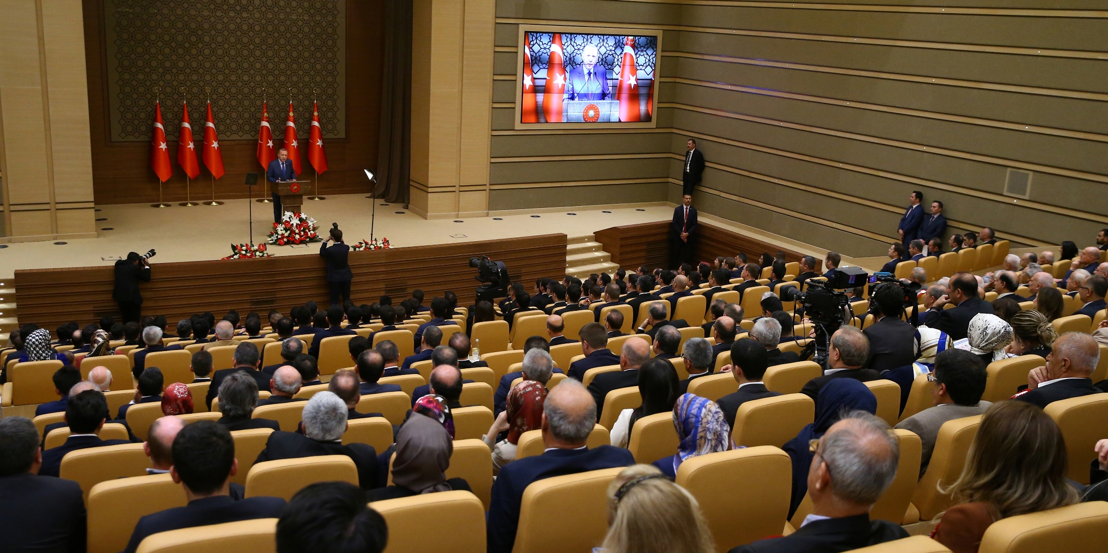Cumhurbaşkanı Recep Tayyip Erdoğan, Cumhurbaşkanlığı Külliyesi'nde gerçekleştirilen 105. Dönem Kaymakamlık Kursu Kura Töreni'nde katılımcılara hitap etti.