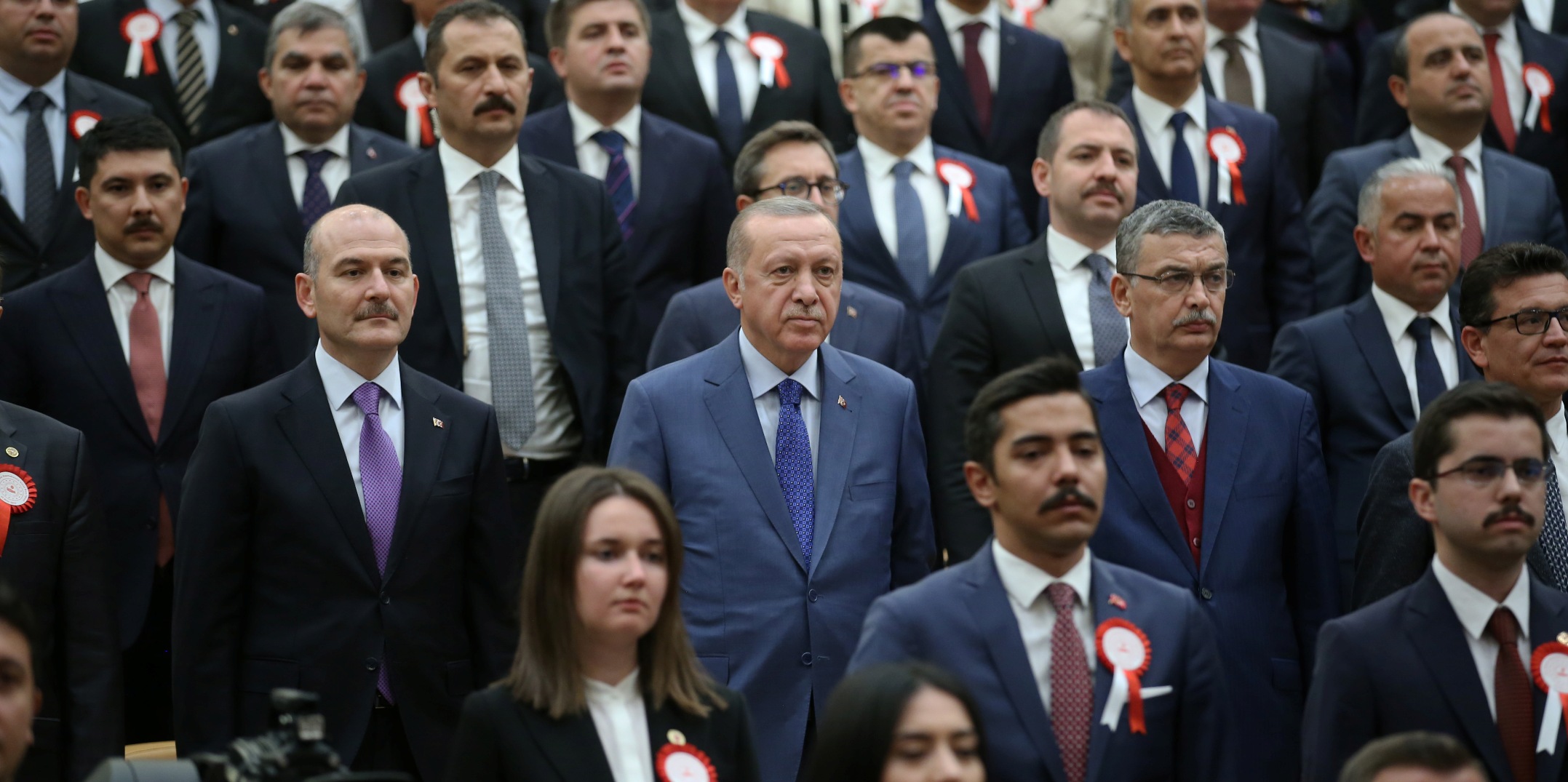 İşte sizler de görev yerlerinize gittiğiniz andan itibaren her an bunlarla karşı karşıya geleceksiniz. Terör örgütlerini inlerinde vurarak adeta felç ettik. Yurt içinde de teröristlere göz açtırmadık. 15 Temmuz darbe girişiminin hedeflerinden biri de Türkiye'nin terörle mücadeledeki bu etkili stratejisini çökertmekti. Allah'ın yardımı ve milletimizin cesaretiyle darbe girişimini başarısızlığa uğratarak bu büyük oyunun bir hamlesini de boşa çıkarttık. Hemen ardından da Fırat Kalkanı Harekatı ile karşı cevabı verdik. Daha sonra Zeytin Dalı Harekatı ile büyük planın bir ayağını daha kırdık. Bu bölgelere geri dönen 365 bin sığınmacı Türkiye'nin Suriye'deki gerçekten insani duyarlılıkla adımlar atan tek ülke olduğunu gösterdi. Tüm bu süreç, siyasi ve diplomatik çabalarımızı kesintisiz sürdürmemize vesile oldu."