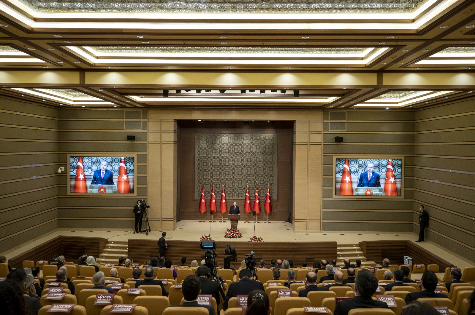 Cumhurbaşkanı Erdoğan, Cumhurbaşkanlığı Külliyesi'nde düzenlenen Cumhurbaşkanlığı Kültür ve Sanat Büyük Ödülleri Töreni'nde konuştu.