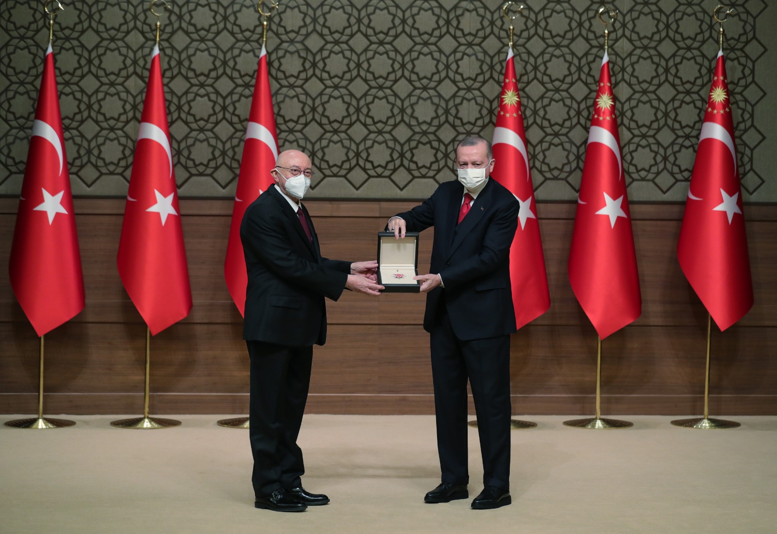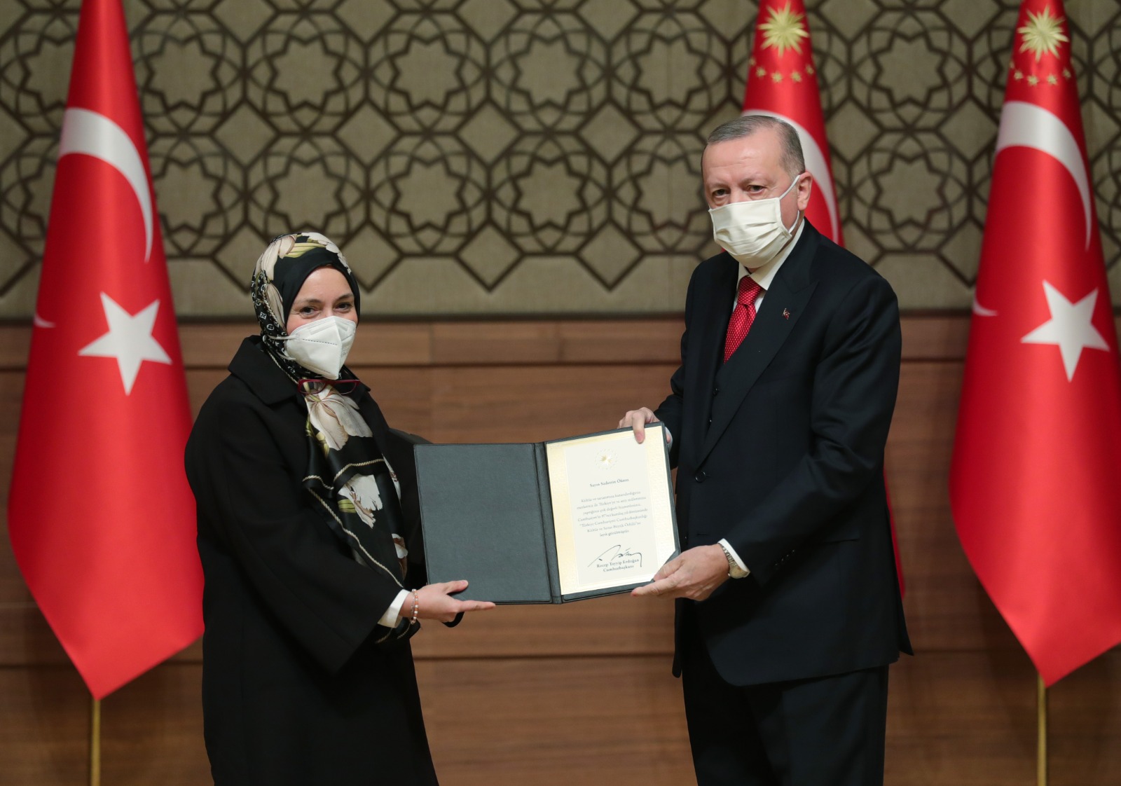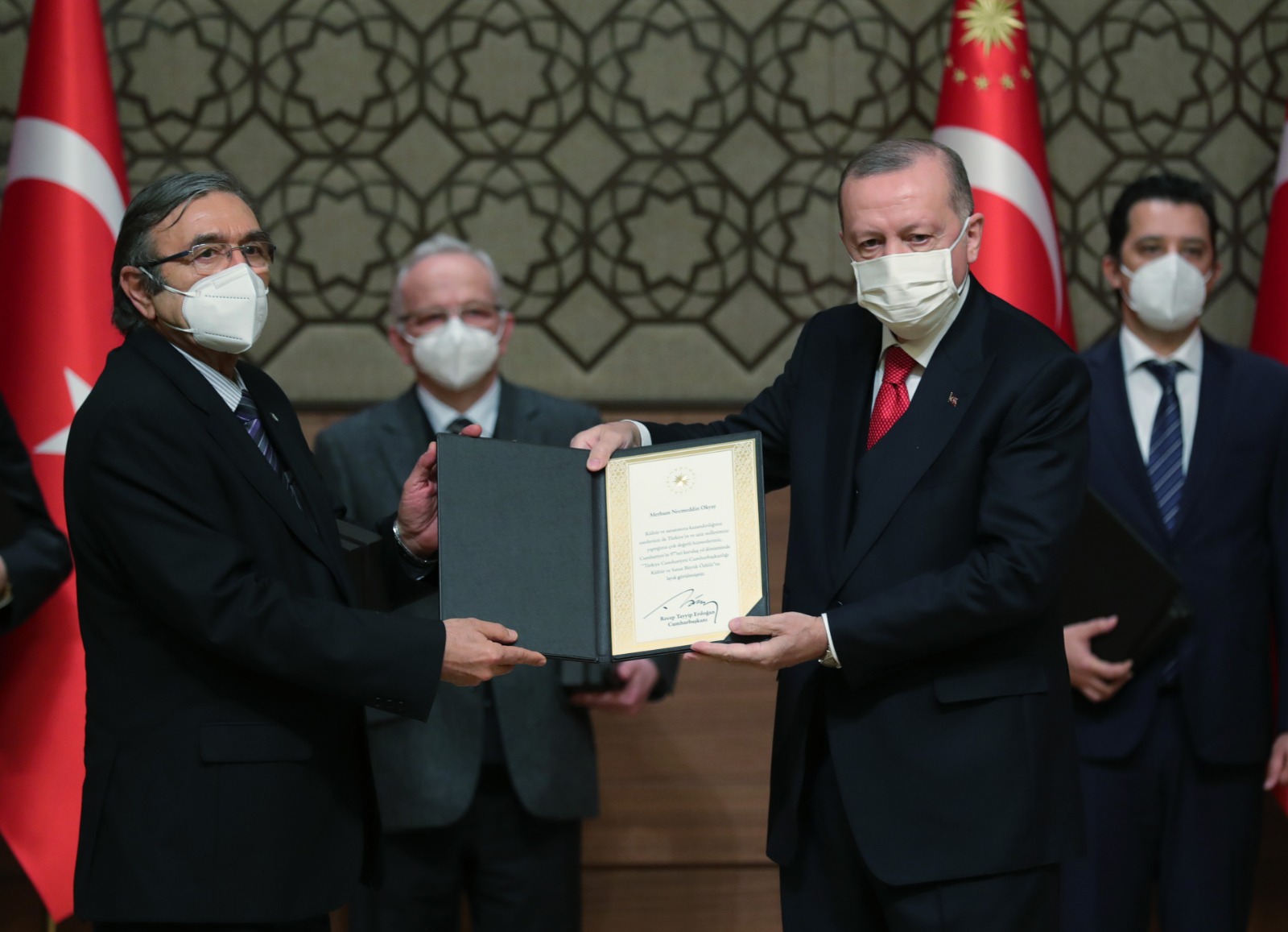 Konuşmaların ardından Cumhurbaşkanı Erdoğan, Cumhurbaşkanlığı Kültür ve Sanat Büyük Ödülünü alanlara ödüllerini takdim etti.