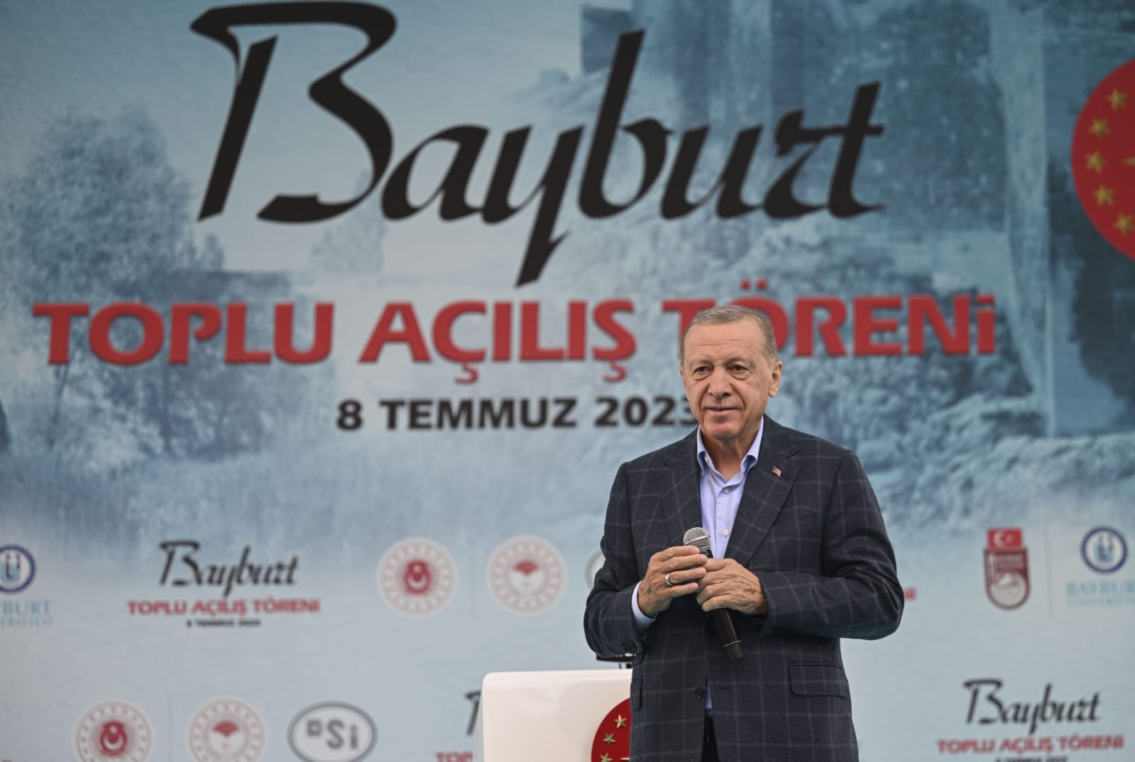 Cumhurbaşkanı Erdoğan, "Biz zaten Türkiye Yüzyılı'nın inşasını her gün tuğla üstüne tuğla koyarak gerçekleştiriyoruz. Bunun en güzel örneği Bayburt'tur. Bayburt'a hükümetlerimiz dönemlerinde toplam 15 milyar lira tutarında kamu yatırımı yaptık." diye konuştu.