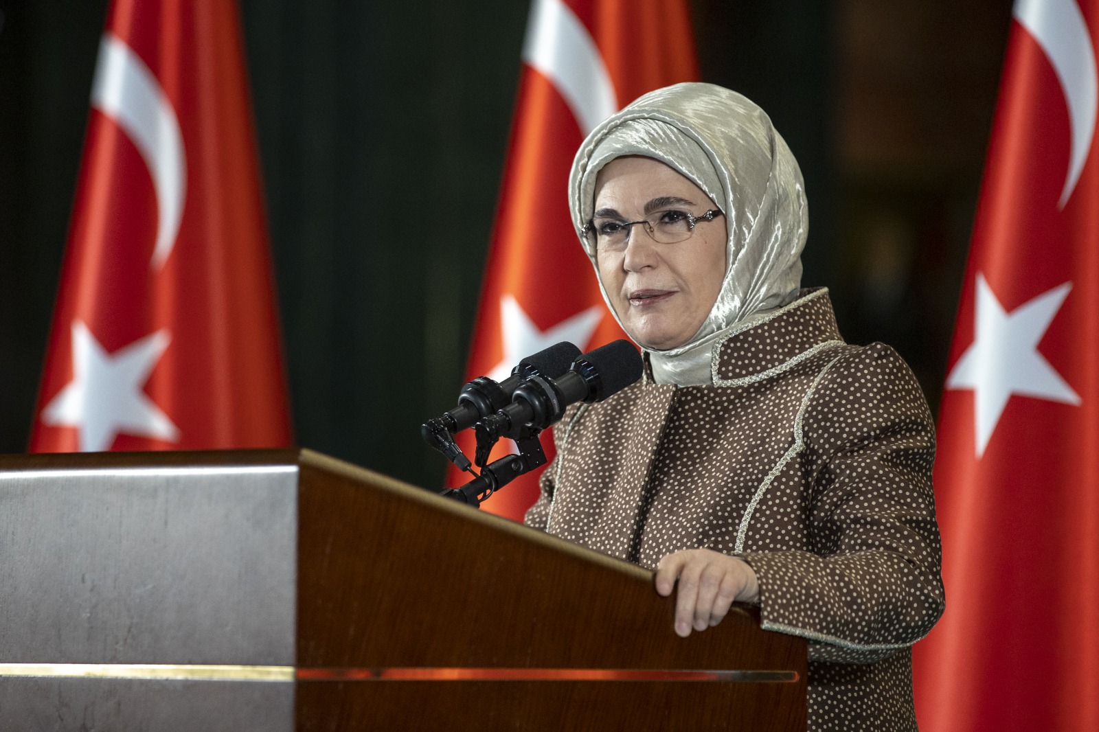 Dünyada her üç kadından birisinin, hayatının bir döneminde, şiddetin bir boyutuyla tanıştığını aktaran Emine Erdoğan, "Bu istatistik, kalbimizin en büyük yorgunluğudur. İstisnasız, tüm dünyada görülen şiddet salgınını ortadan kaldırmak için, iş birliğimizi daha da artırmalıyız. Şiddete karşı, tek yürek ve tek akıl olmadan bu işi çözemeyiz." ifadelerini kullandı.