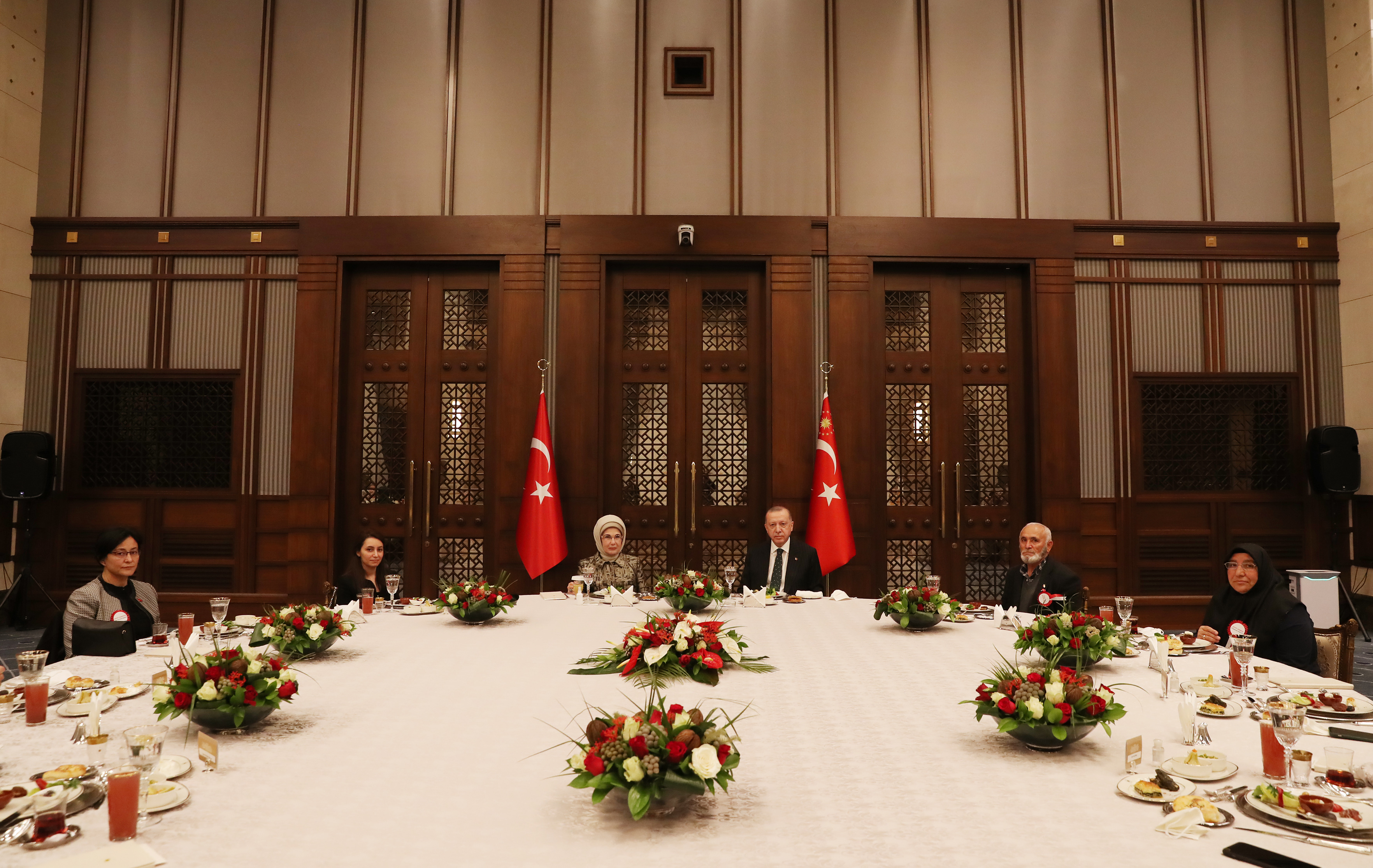 Cumhurbaşkanı Recep Tayyip Erdoğan ve eşi Emine Erdoğan, Cumhurbaşkanlığı Külliyesi'nde şehit aileleri ile iftar yemeğinde bir araya geldi. İftar yemeğine Cumhurbaşkanı Yardımcısı Fuat Oktay da katıldı.