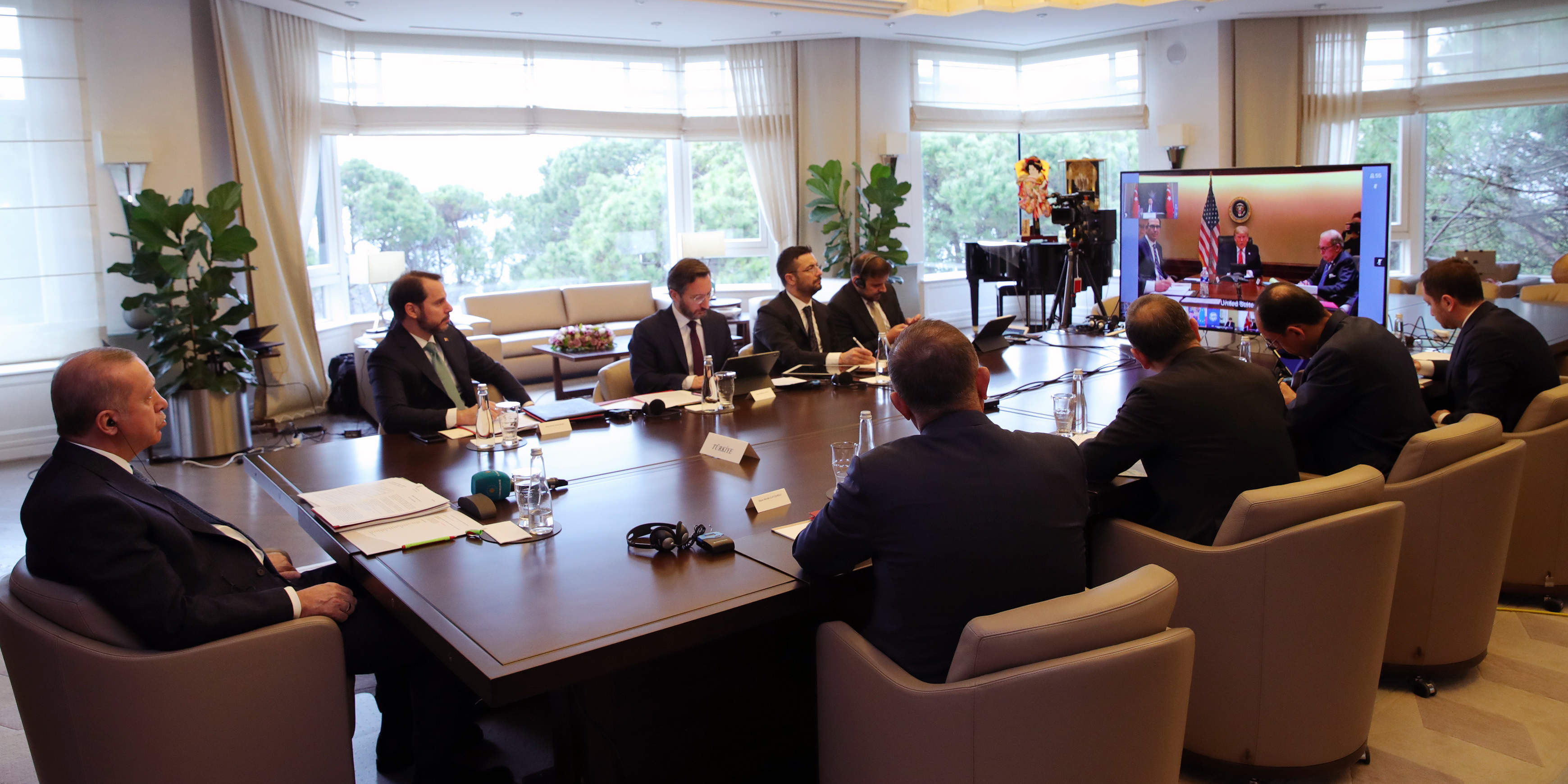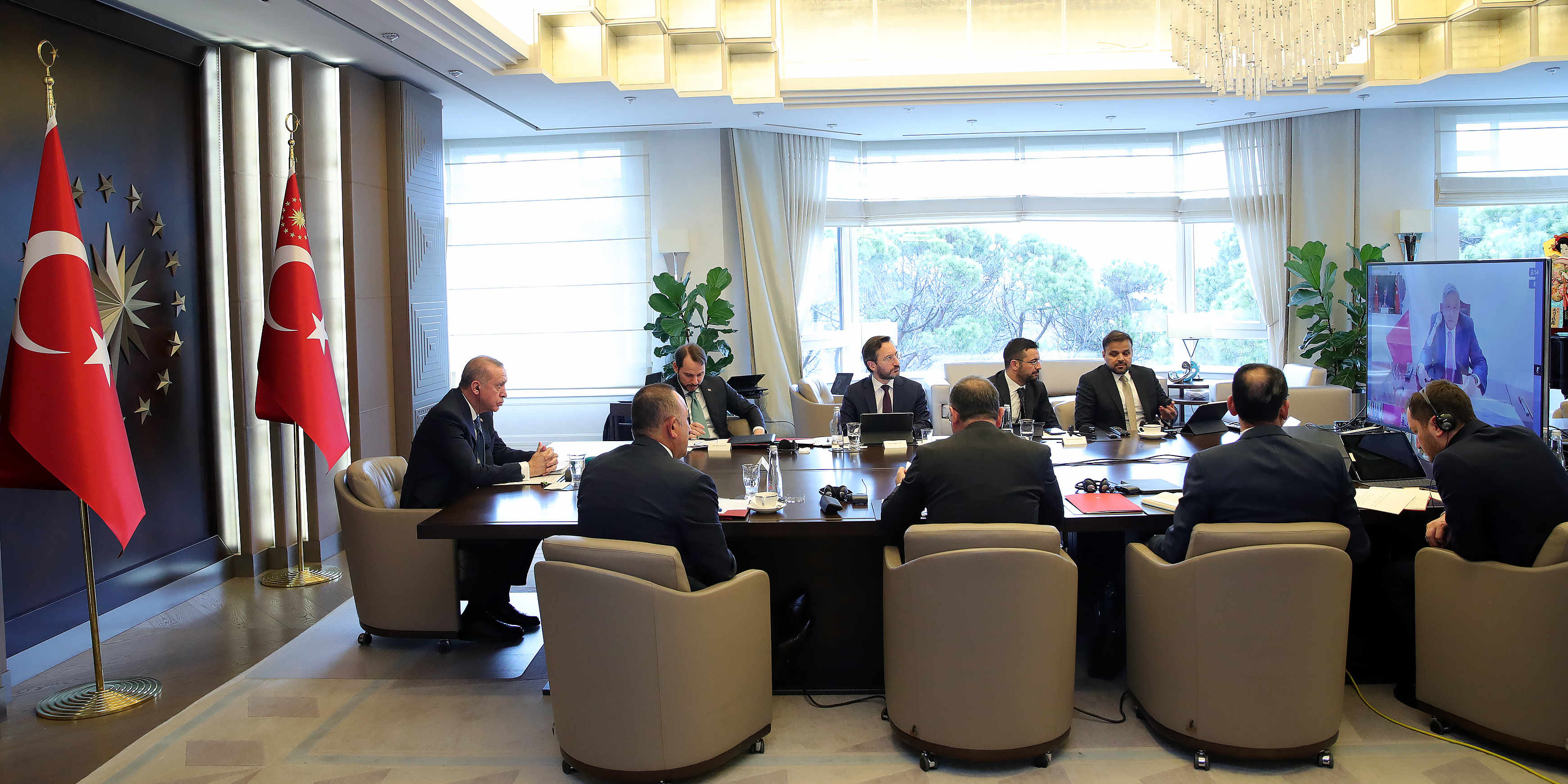 Cumhurbaşkanı Erdoğan'ın Tarabya'daki Huber Köşkü'nden iştirak ettiği zirve 2 saat 15 dakika sürdü.
