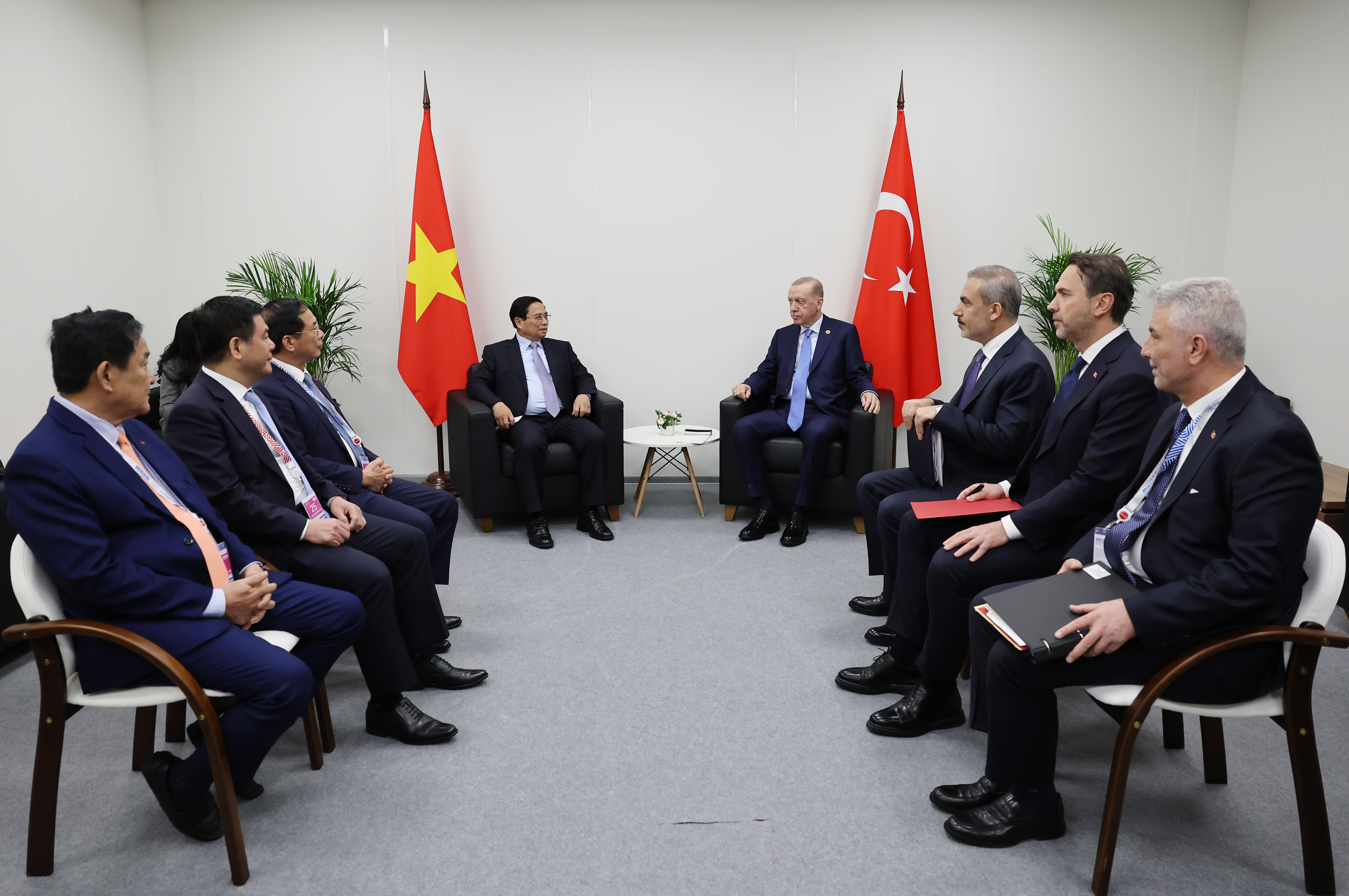 Cumhurbaşkanı Recep Tayyip Erdoğan, BRICS Liderler Zirvesi için gittiği Tataristan'ın başkenti Kazan'da Vietnam Başbakanı Pham Minh Chinh ile bir araya geldi.