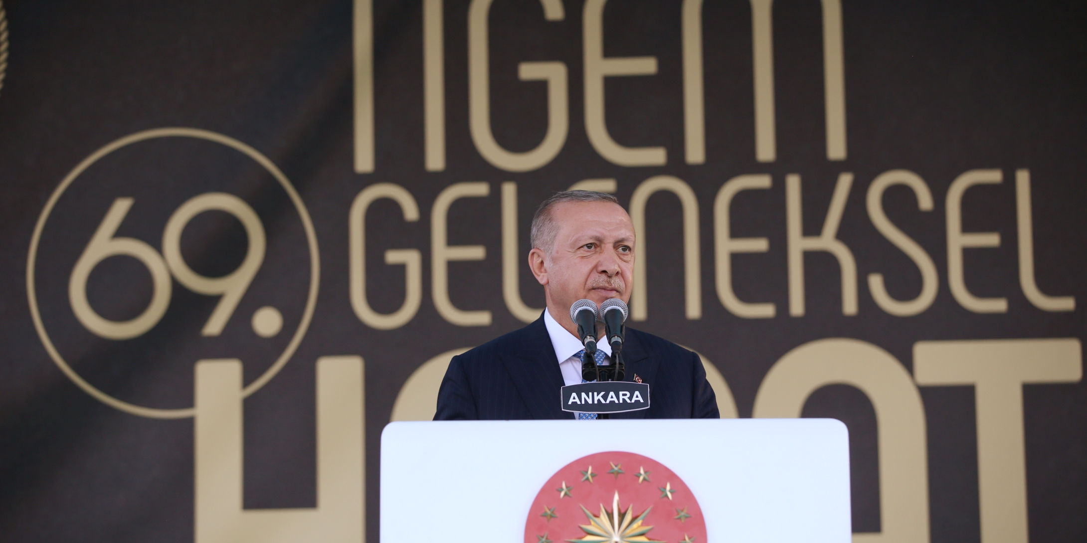 Cumhurbaşkanı Recep Tayyip Erdoğan, Polatlı Tarım İşletme Müdürlüğünde düzenlenen TİGEM 69'uncu Geleneksel Hasat Bayramı'nda vatandaşlara hitap etti.