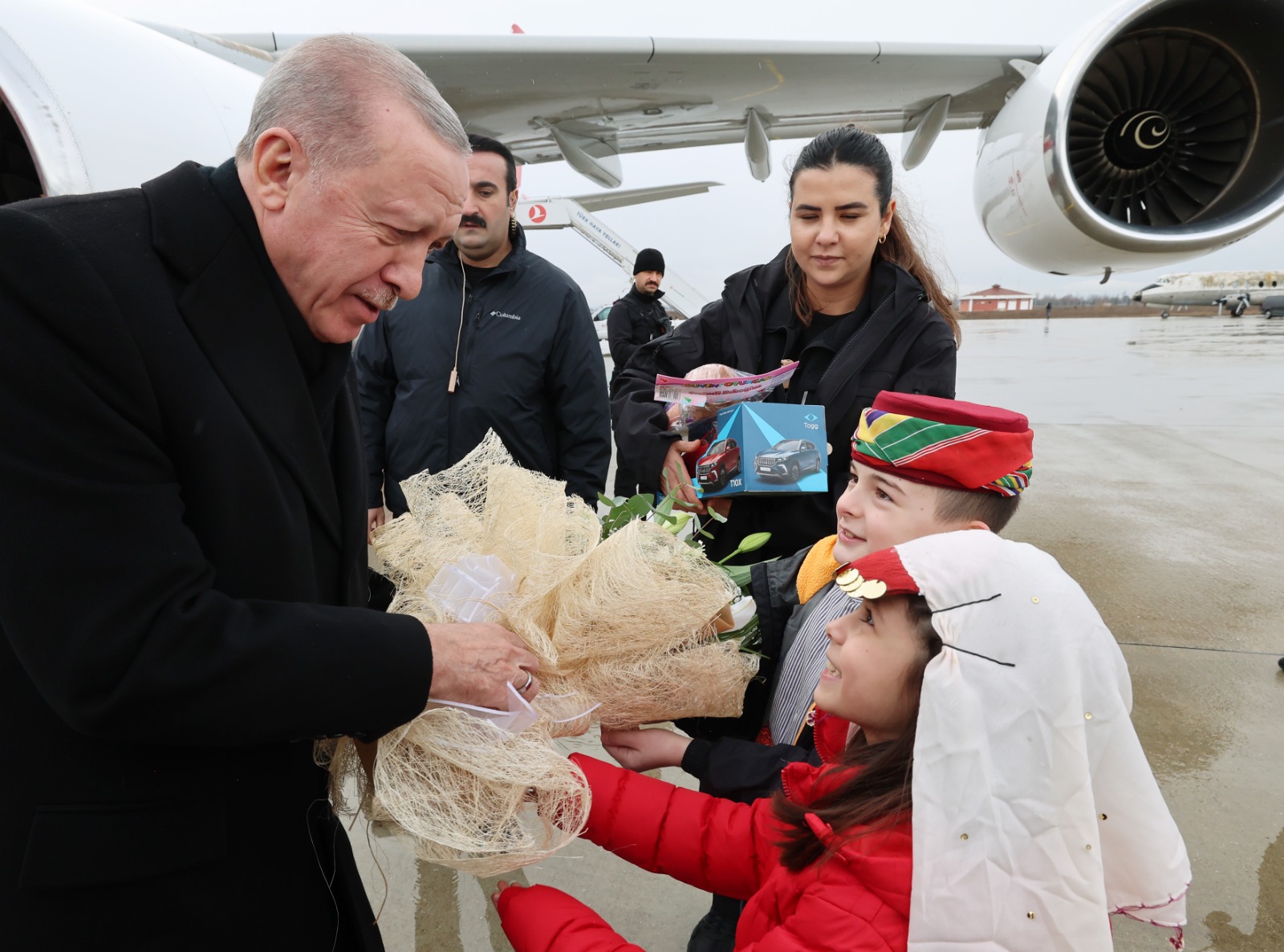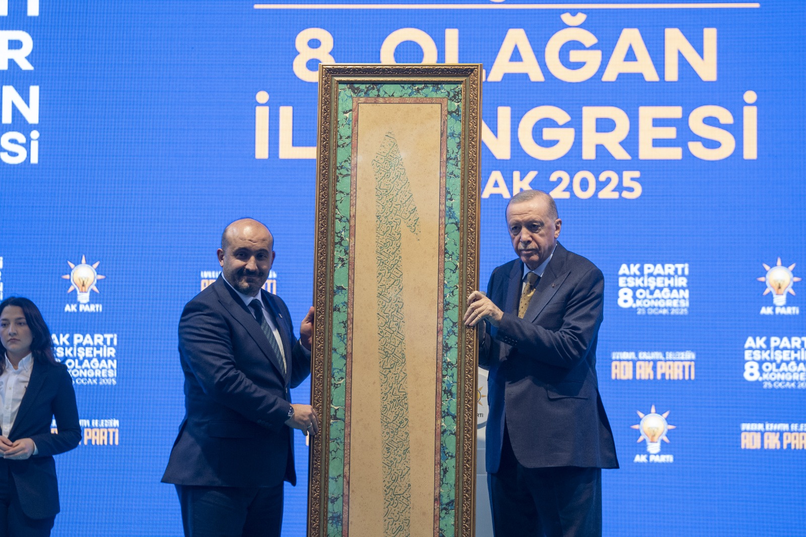 Konuşmasının ardından Cumhurbaşkanı Erdoğan'a, İl Başkanı Albayrak, Yunus Emre'nin "Aşk" şiirinden oluşturulan Elif tablosu takdim etti.