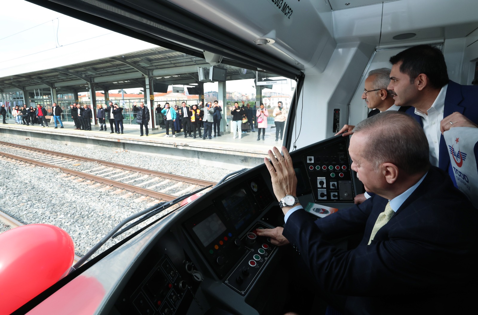 Sirkeci'de, Türk bayraklı balonlarla donatılan banliyö trenine binen Cumhurbaşkanı Erdoğan, makinist koltuğuna oturdu. Cumhurbaşkanı Erdoğan'ın düdüğünü çalıp kullandığı tren, Kazlıçeşme'ye hareket etti.