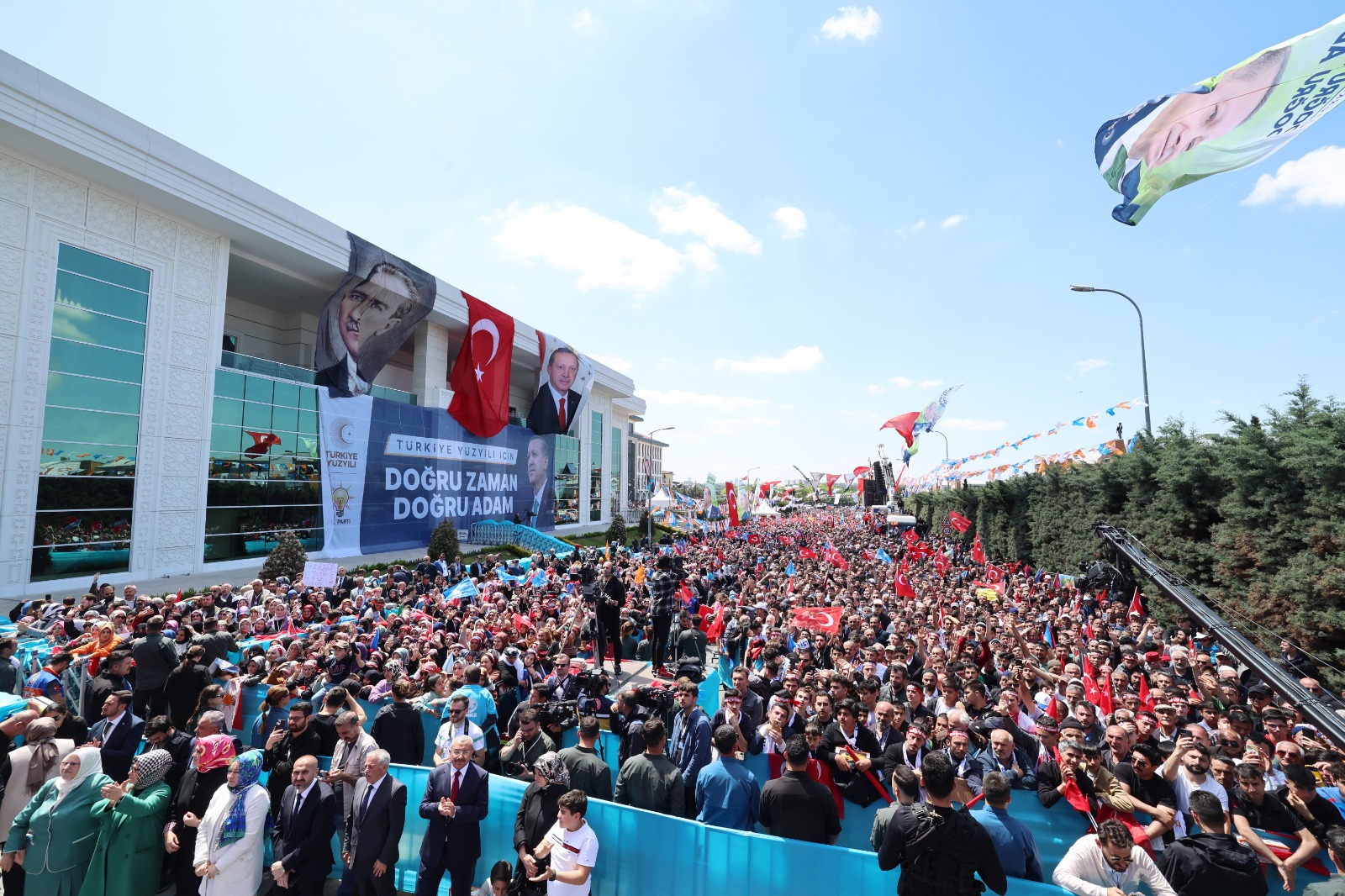 Cumhurbaşkanı Erdoğan, Sancaktepe'ye, Sancaktepelilere inandığını, güvendiğini ifade ederek, "Zira yarınki seçim aynı zamanda 2024'ün de müjdecisi olacaktır. Ben kalbi kıpır kıpır atan gençlerimize güveniyorum. Evi içeriden fethedecek olan kadınlarımıza güveniyorum. Ayaklarının altına cennetlerin serildiği, cennet yüzlü annelerimizin bizleri yalnız bırakmayacağını biliyorum. Mensubu ve hizmetkârı olmaktan şeref duyduğum milletimizin basiret ve ferasetle iradesini sandığa yansıtacağından şüphe duymuyorum. Şimdi buradan soruyorum. Hazır mıyız? Sancaktepe yarın 'Durmak yok, yola devam.' diyor muyuz? Yarın 'Doğru adımlarla yola devam.' diyor muyuz? Yarın 'Türkiye Yüzyılı için hemen şimdi.' diyor muyuz? Bunun için son ana kadar kapı kapı dolaşıyor muyuz? Rabbim yolumuzu, bahtımızı açık etsin." diye konuştu.