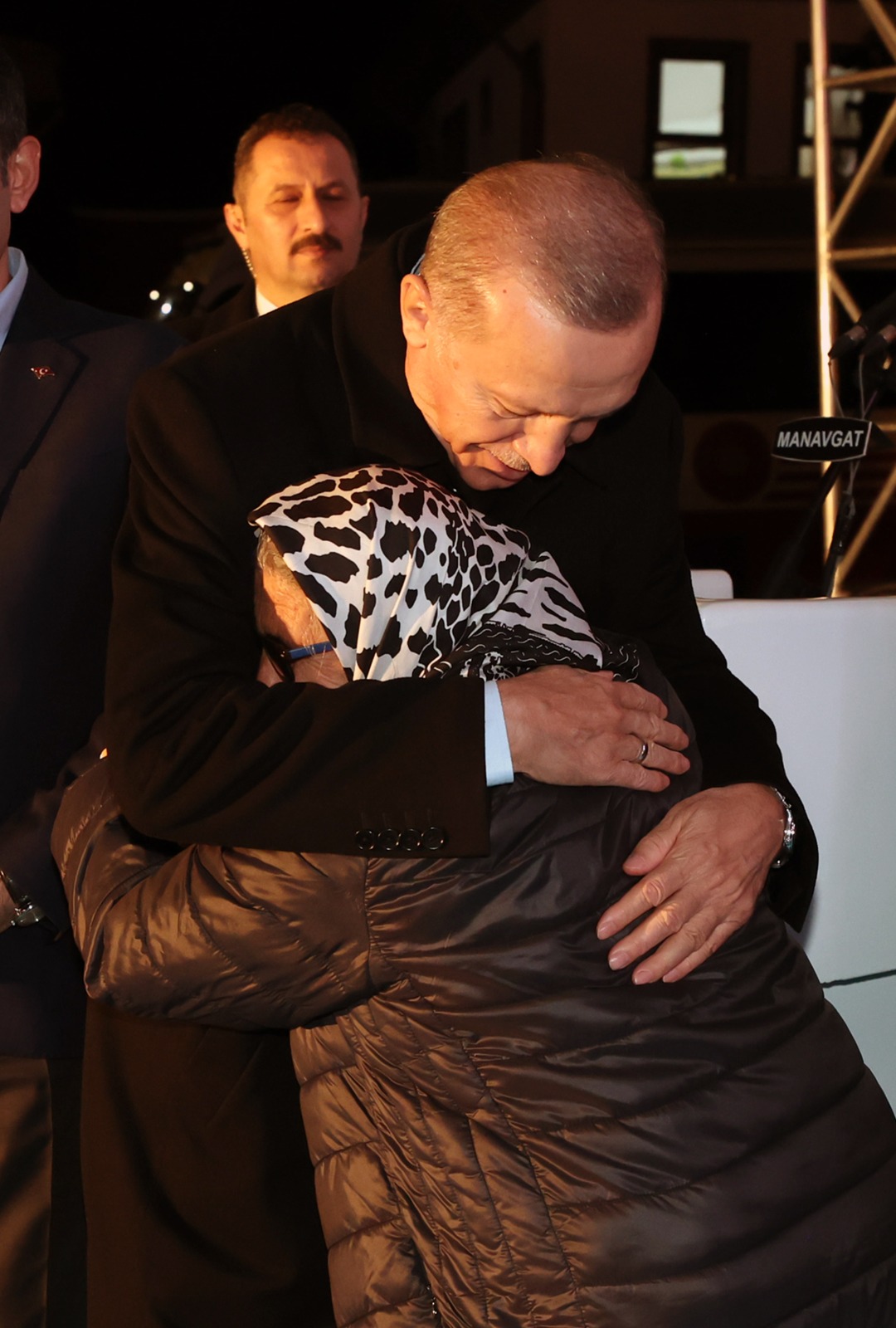 Ardından, geçen ay sel felaketine maruz kalan Kumluca'ya geçtiklerini ve 12 bin kişinin de Kumluca'da olduğunu aktaran Cumhurbaşkanı Erdoğan, söz verdikleri köy konutlarından bir kısmının anahtar teslimi vesilesiyle Manavgatlılarla bir arada olduklarını söyledi.