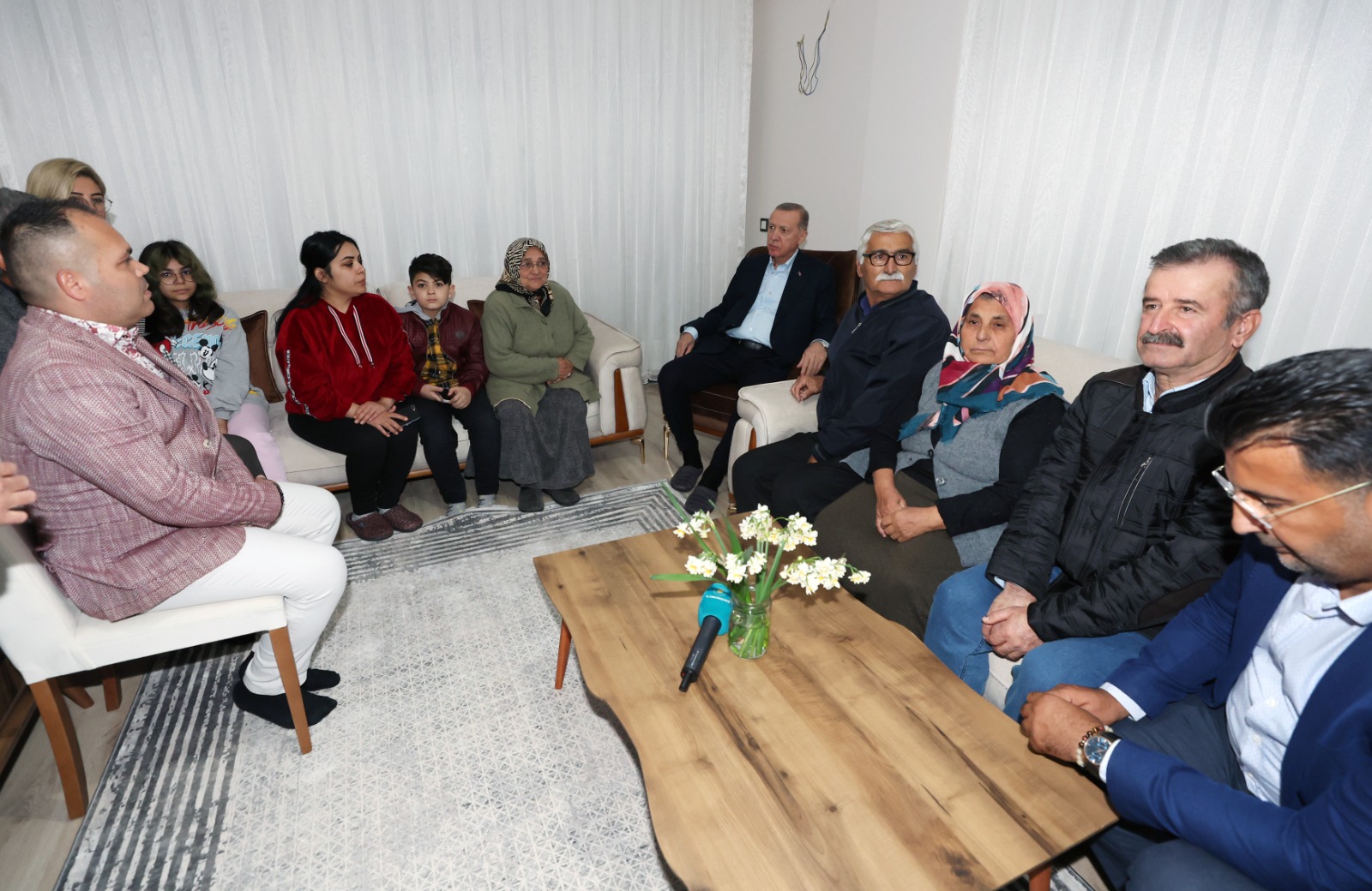 Cumhurbaşkanı Erdoğan, anahtar teslim törenin ardından yeni evine kavuşan Rıfat Akça'nın ailesini ziyaret etti.