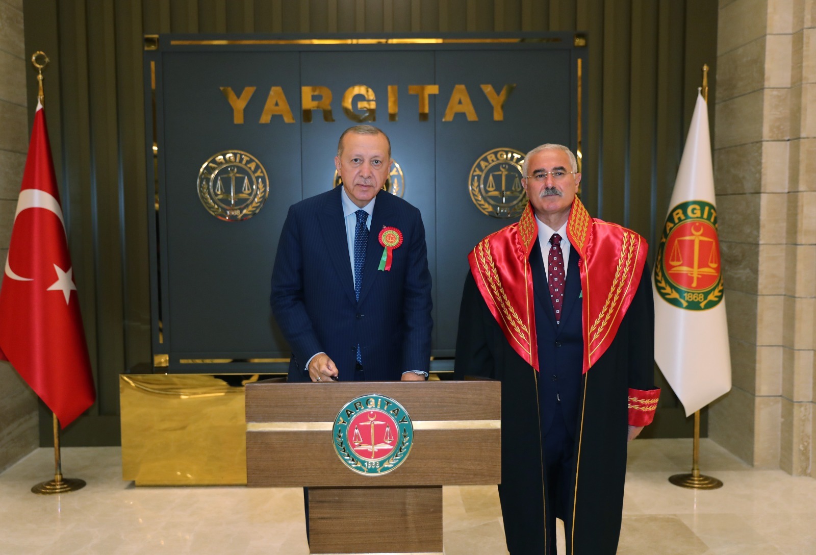 Bugün Yargıtay'ın bu muhteşem binasında yeni adli yılın karşılanıyor olmasını ayrıca önemli gördüğünü belirten Cumhurbaşkanı Erdoğan, son 20 yılda adalet teşkilatının çehresini değiştiren fiziksel ve yapısal dönüşümlerin yeni bir örneğine daha burada şahitlik edildiğini söyledi.