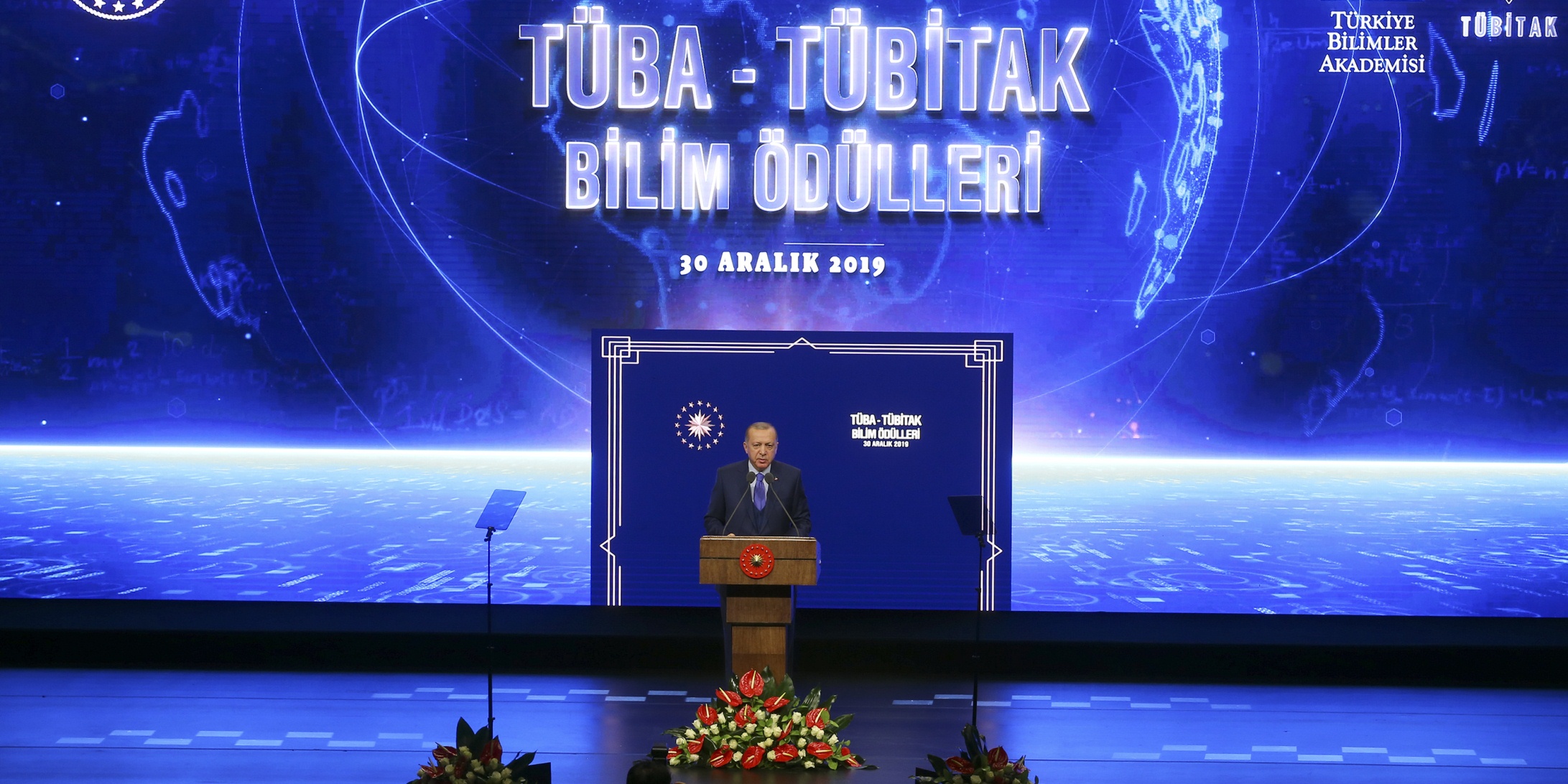 Cumhurbaşkanı Recep Tayyip Erdoğan, Beştepe Millet Kongre ve Kültür Merkezi'nde, Türkiye Bilimsel ve Teknolojik Araştırma Kurumu (TÜBİTAK) ve Türkiye Bilimler Akademisi (TÜBA) Bilim Ödülleri Töreni'nde katılımcılara hitap etti.