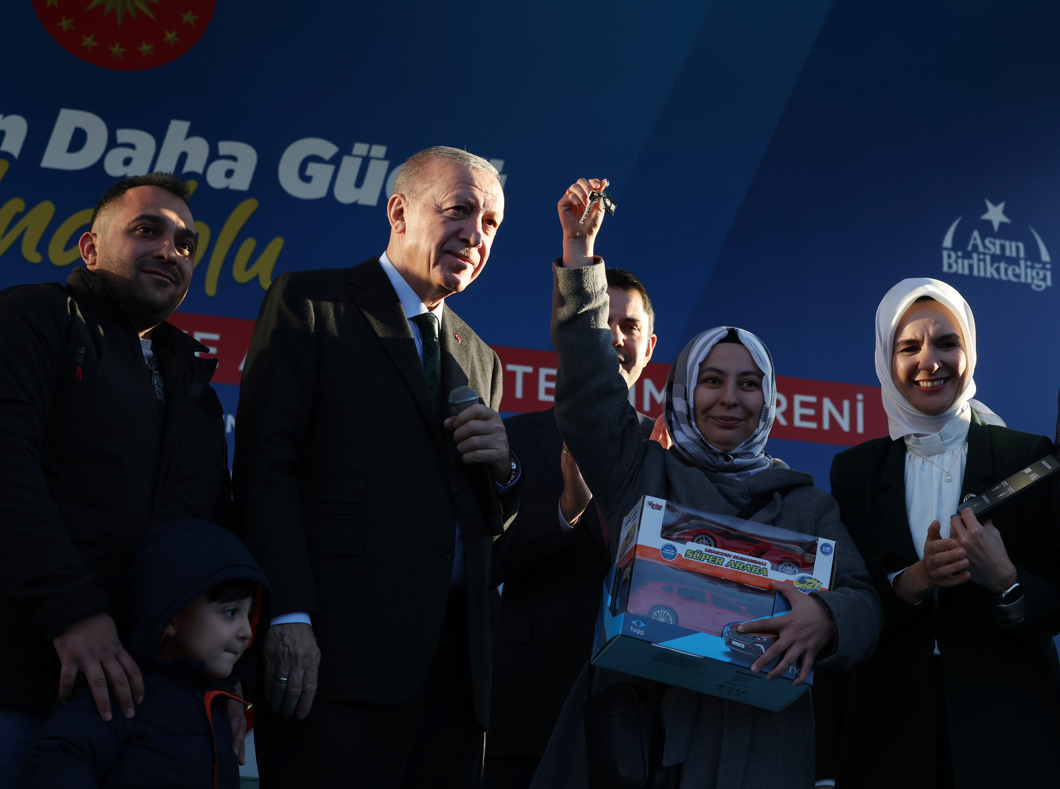 Cumhurbaşkanı Recep Tayyip Erdoğan, Merkez Spor Kompleksi yanında düzenlenen "Yeniden Güçlü Anadolu" 155 Bininci Konut Kura Çekimi ve Anahtar Teslim Töreni'ne katıldı.