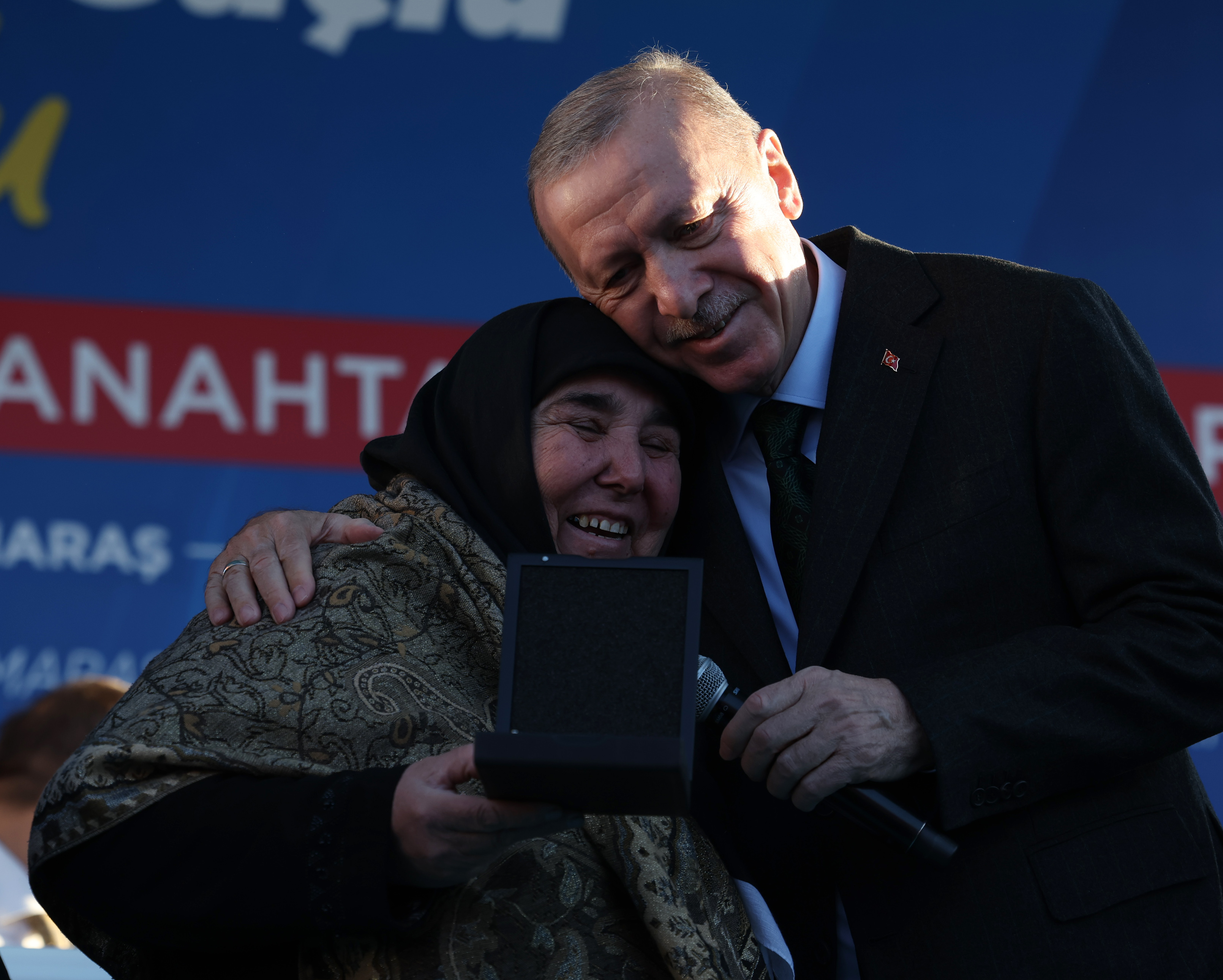 Türk edebiyatının usta isimlerinden yazar ve şair Adil Erdem Bayazıt'ın Diriliş Saati şiirinden, "Ey her depremden sonra biraz daha doğrulan, herkesin veba girmiş bir şehrin hem halkı hem seyircisi olduğu bir günde ey düştüğü yerden kalkmaya hazırlanan ülke. Her damlası bir zafer müjdecisi, bir posta eri gibi yağmur yüzümüze değince çıkacağız yola." mısrasını okuyan Cumhurbaşkanı Erdoğan, "İşte Kahramanmaraş, merhum şairimizin dediği gibi 6 Şubat depremlerinden sonra doğruluyor, devletimizin de desteğiyle düştüğü yerden ayağa kalkıyor." dedi.