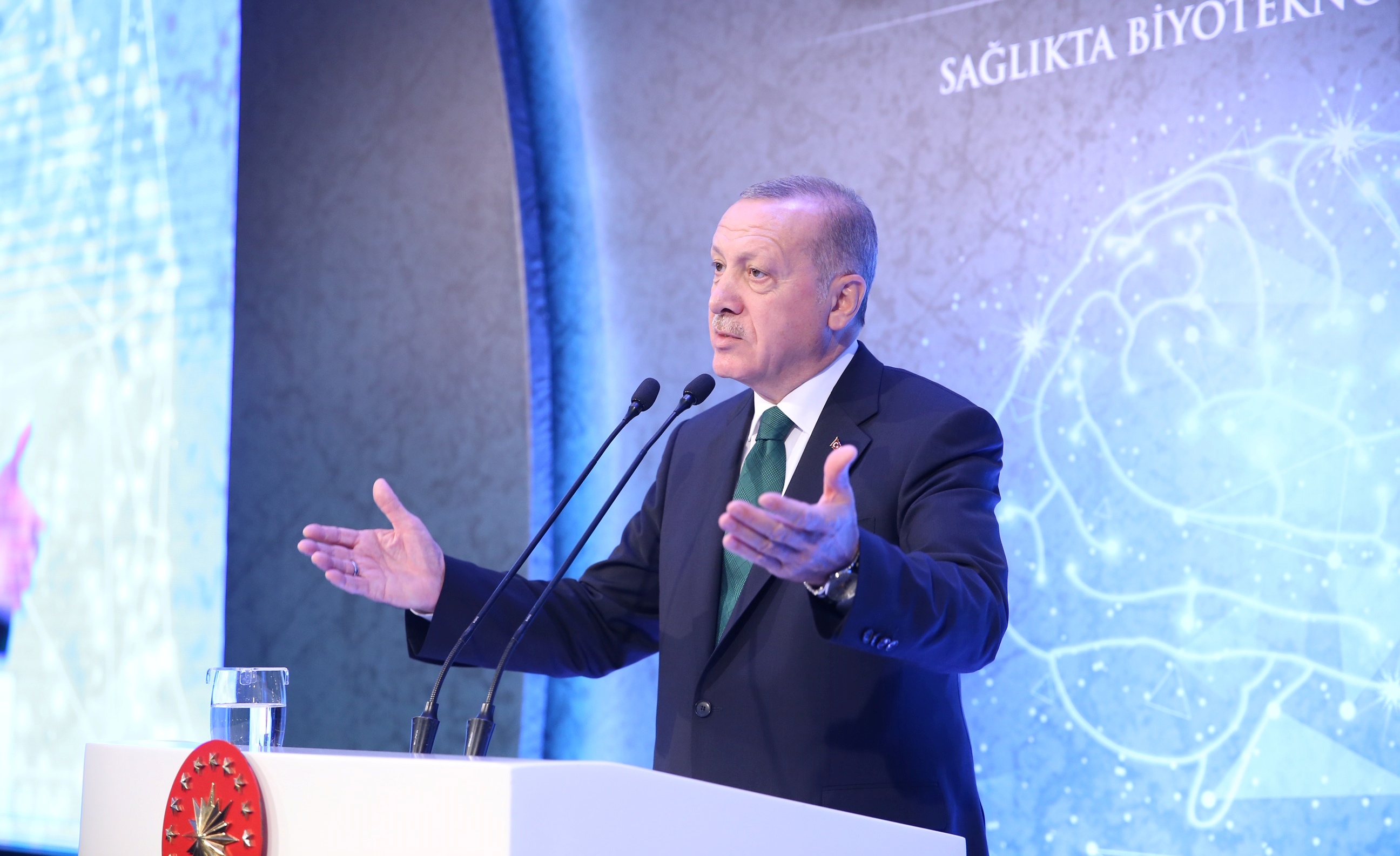 Türkiye'nin, Allah'ın insanlara verdiği nimetleri bulma, ortaya çıkarma ve faydaya dönüştürme çabası olarak kabul ettiği bioteknoloji araştırmalarında da en üst sıralarda yer alması gerektiğini belirten Erdoğan, bunun için gereken her türlü çabayı göstermekte, her türlü desteği vermekte kararlı olduklarını ifade etti.