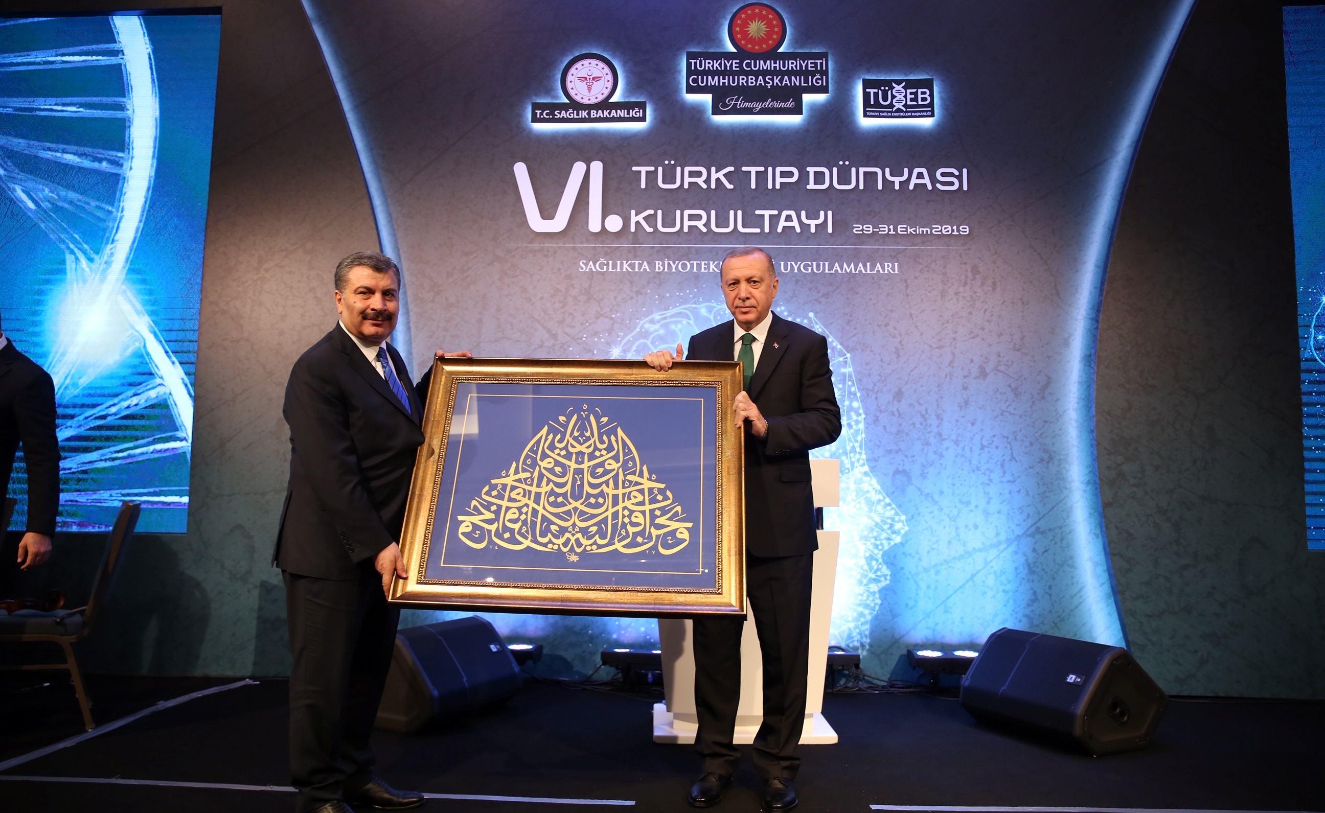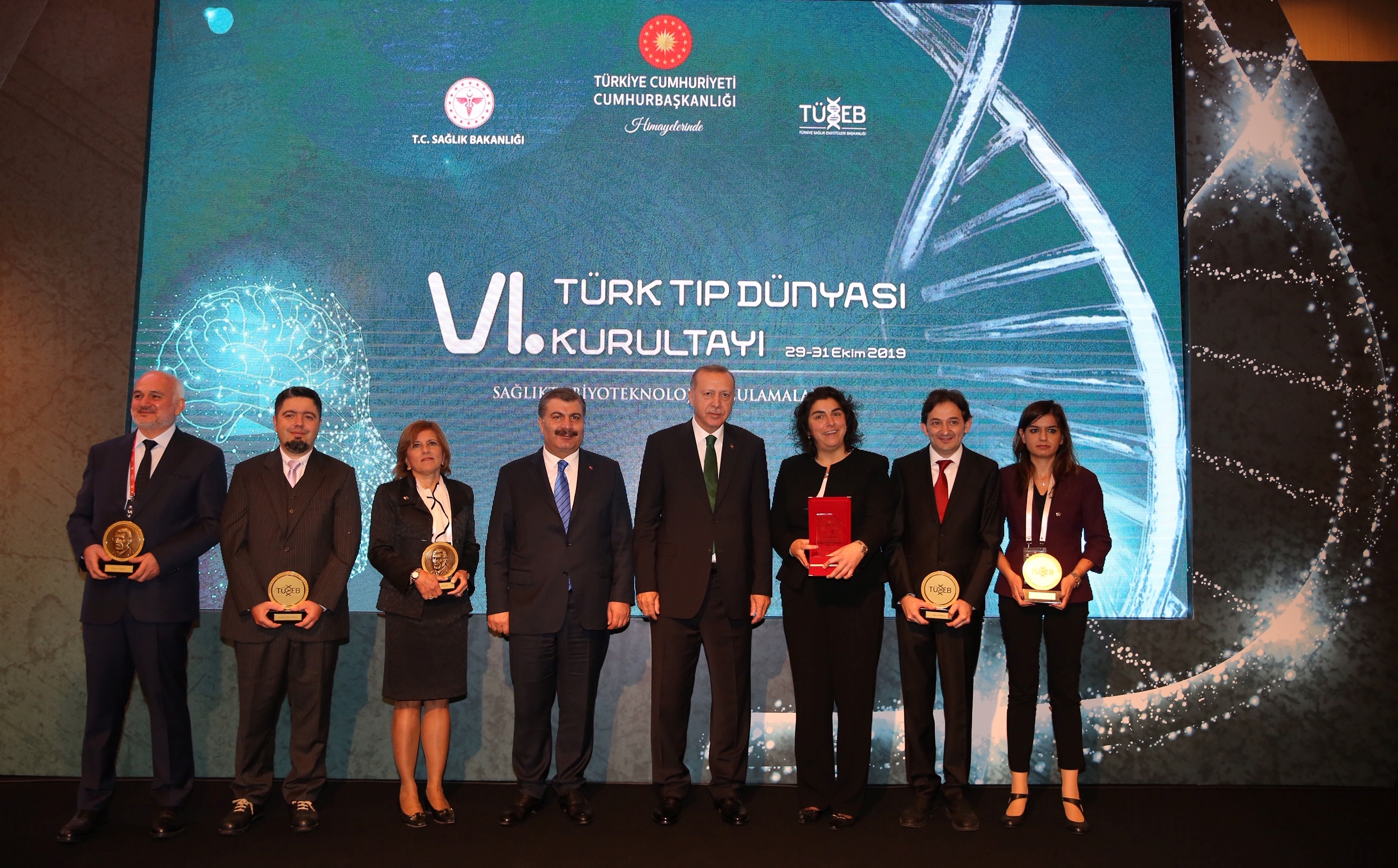 Erdoğan, 6. Türk Tıp Dünyası Kurultayı'nın hayırla vesile olmasını dileyerek, ödül alan bilim insanlarını tebrik etti.