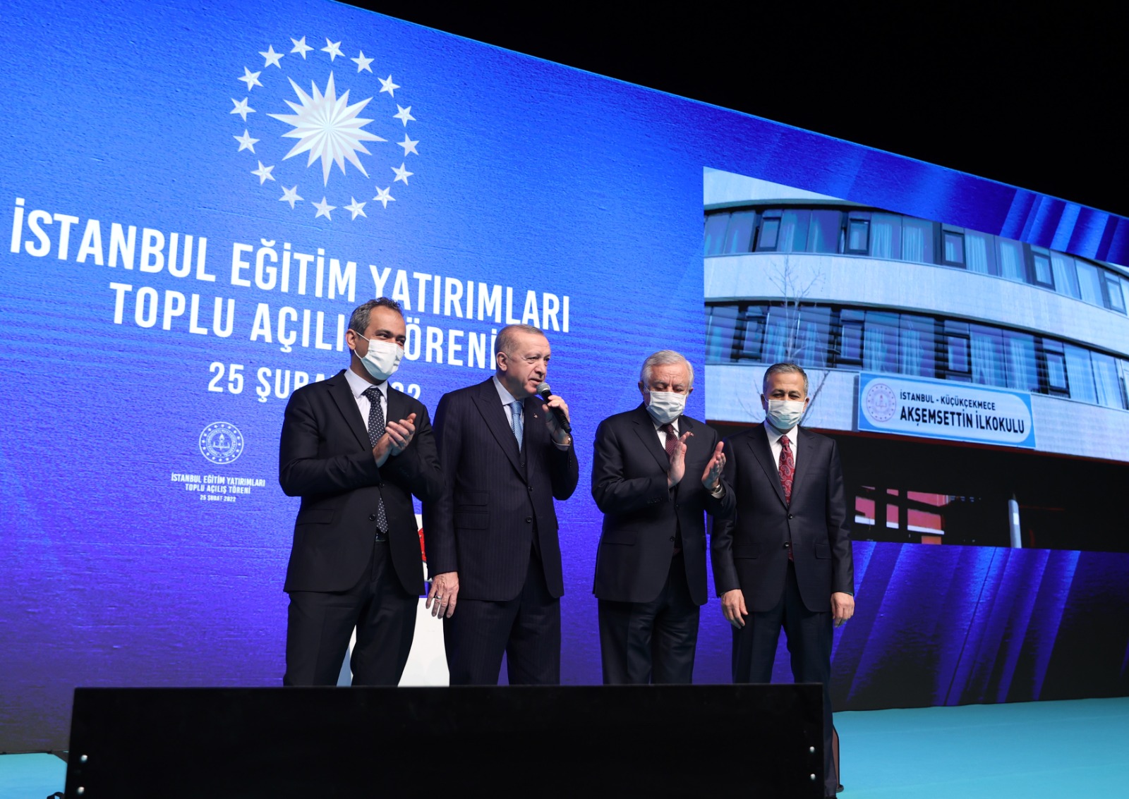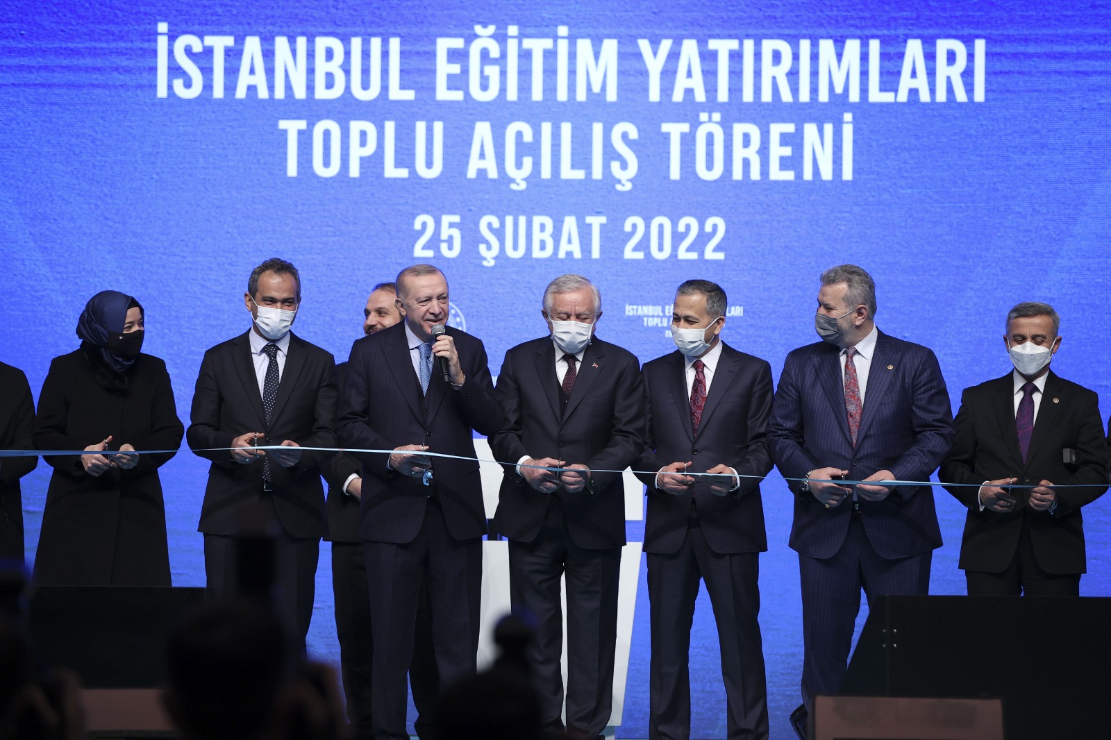 Cumhurbaşkanı Erdoğan, açılış Töreni'nde yaptığı konuşmaya, resmi açılışı yapılan eğitim-öğretim yatırımlarının ülkeye, millete, İstanbul'a ve İstanbullulara hayırlı olmasını dileyerek başladı. Bugün 1 Temmuz 2019 ile 15 Şubat 2022 tarihleri arasında inşası tamamlanan toplam 122 okulu resmen hizmete aldıklarını dile getiren Cumhurbaşkanı Erdoğan, bu eğitim kurumlarından 56 okulun, 1321 dersliğin Millî Eğitim Bakanlığınca, 39 okulun, 1280 dersliğin İstanbul Proje Koordinasyon Birimince, 27 okul, 556 dersliğin ise hayırseverler tarafından şehre kazandırıldığını söyledi.