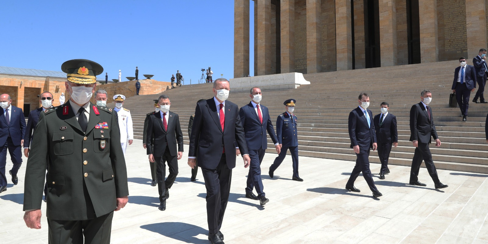 Cumhurbaşkanı Recep Tayyip Erdoğan, başkanlığındaki Yüksek Askeri Şura üyeleri Cumhurbaşkanlığı Külliyesi'ndeki toplantı öncesi Anıtkabir'i ziyaret etti.