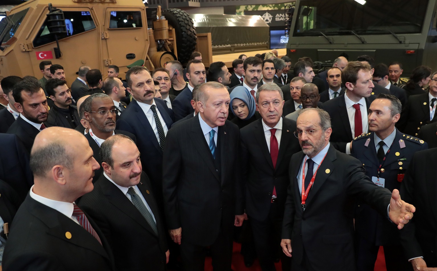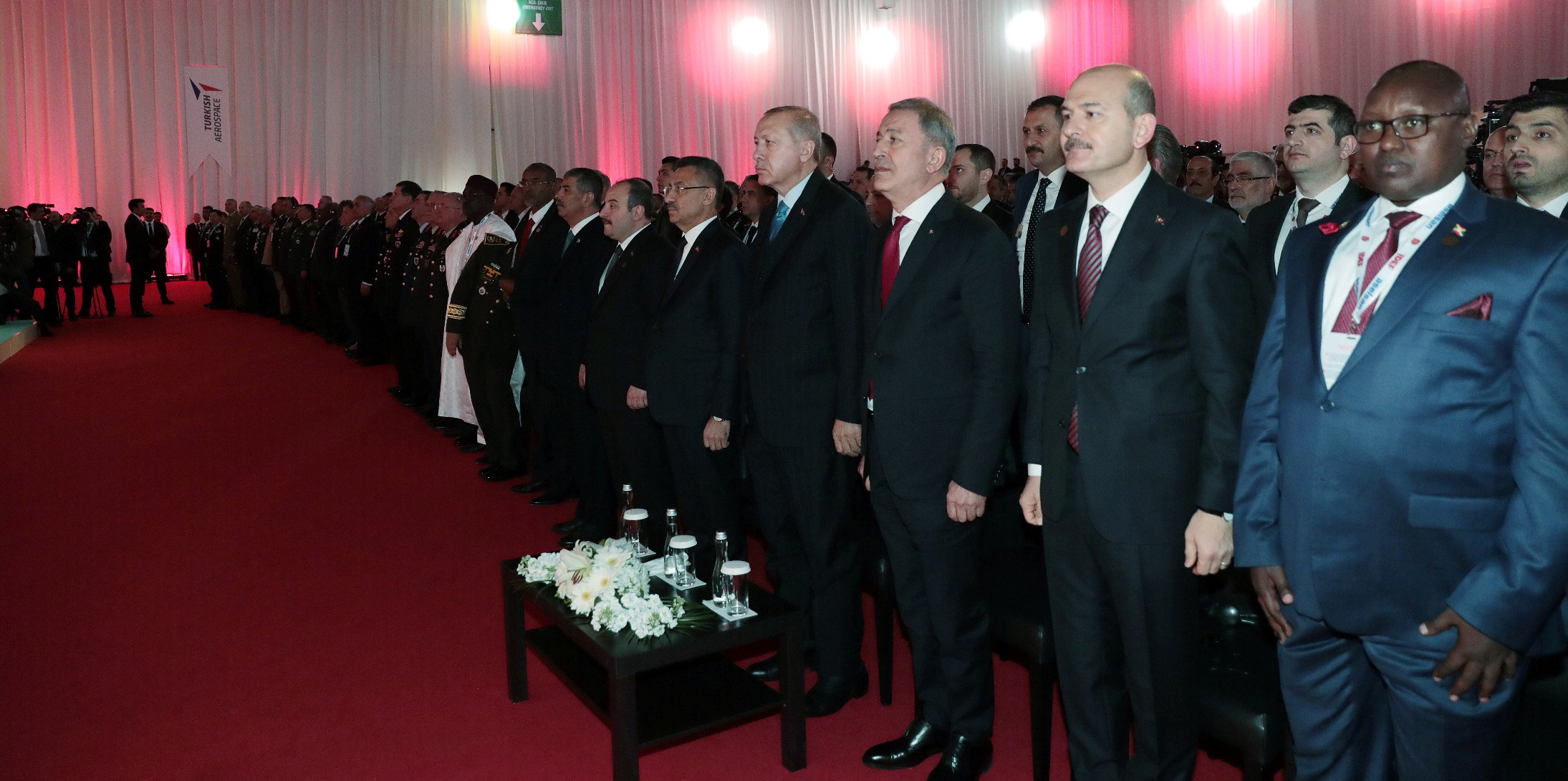Erdoğan, bakanlara, bakan yardımcılarına, müsteşarlara, Genelkurmay Başkanlarına, kuvvet komutanlarına, heyet üyelerine teşekkür ederek, kara, deniz, havacılık ve uzay lojistik destek, güvenlik alanlarında geliştirdikleri son ürünleri sergileyecek firmalara başarılar diledi.