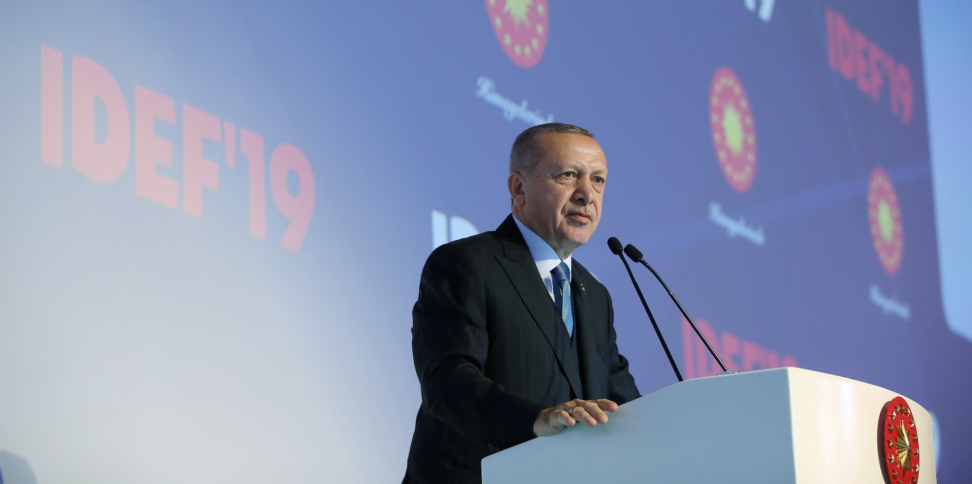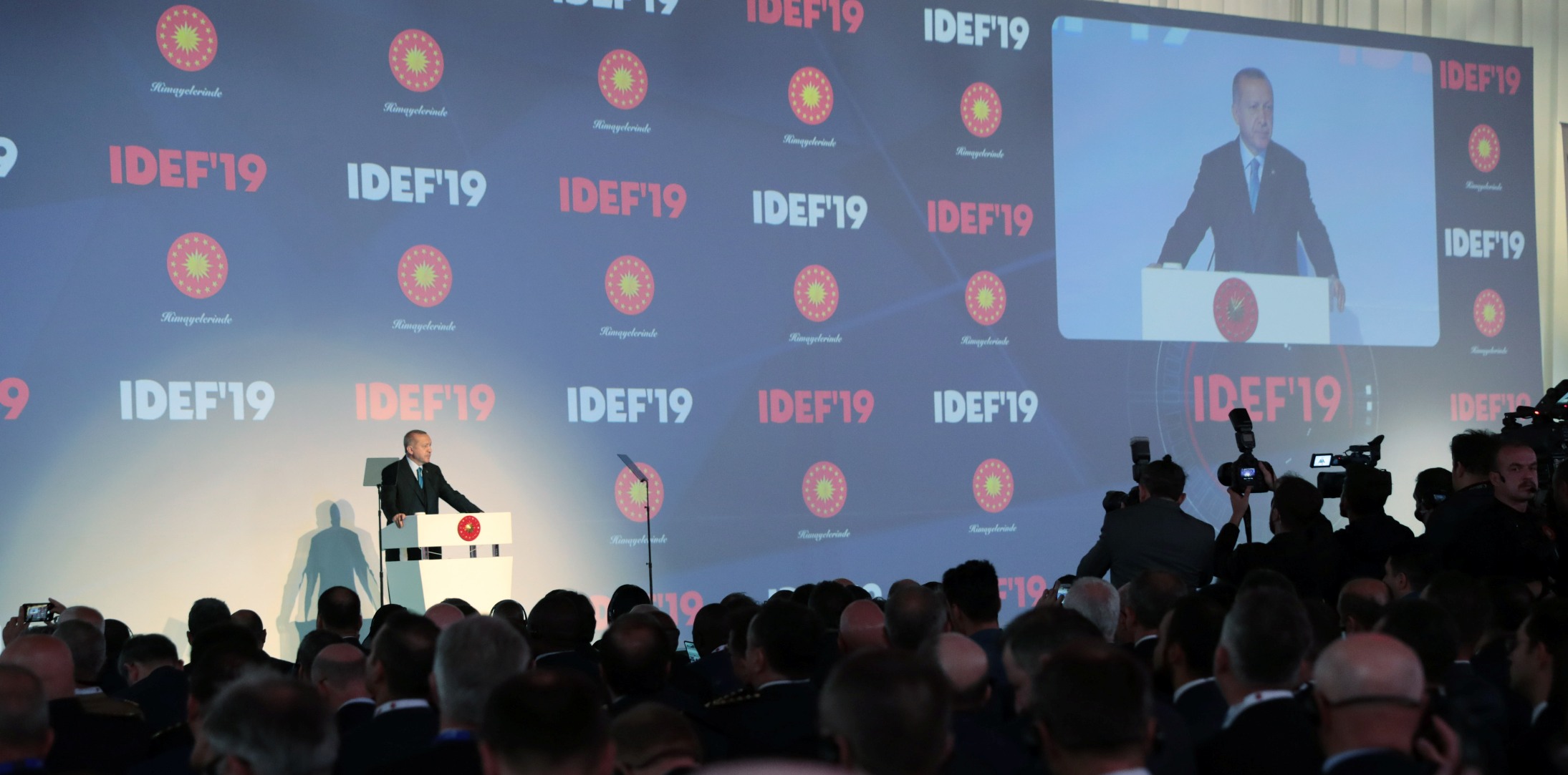 Cumhurbaşkanı Recep Tayyip Erdoğan, İstanbul TÜYAP Fuar ve Kongre Merkezi'nde düzenlenen IDEF'19 14. Uluslararası Savunma Sanayi Fuarı'ndaki konuşmasında, Cumhurbaşkanlığı himayesinde yapılan organizasyonun gerçekleştirilmesinde emeği ve katkısı olanları tebrik etti.