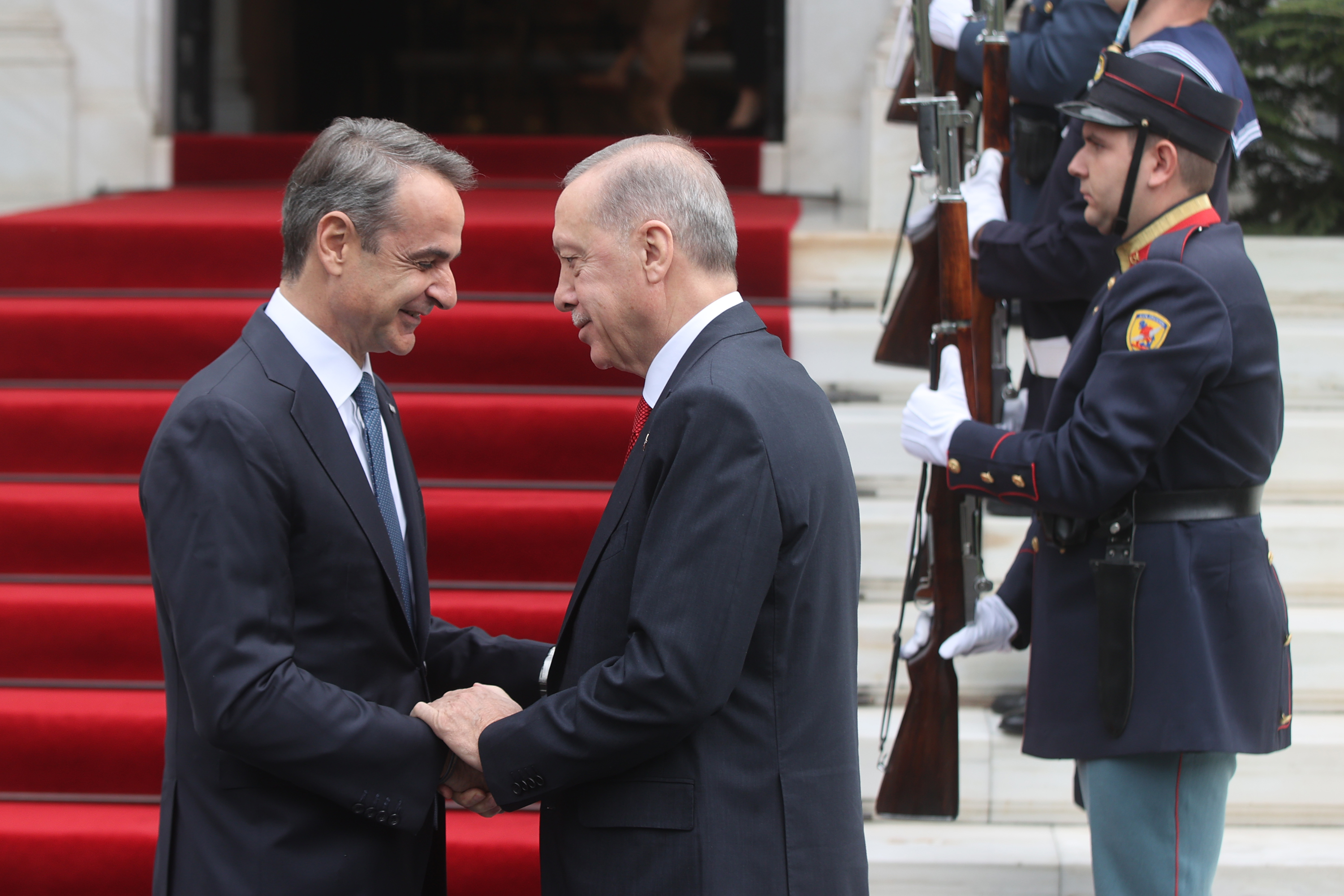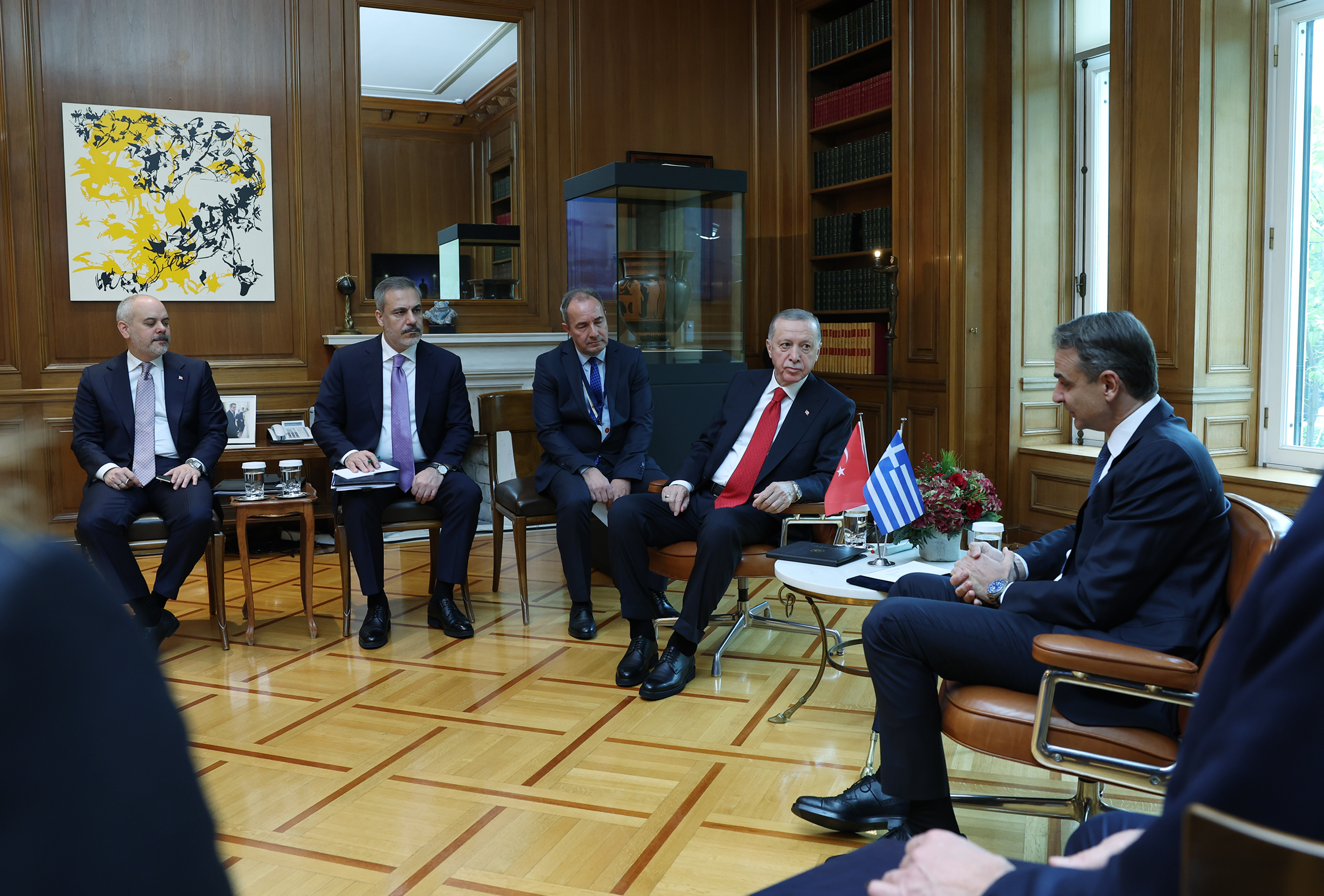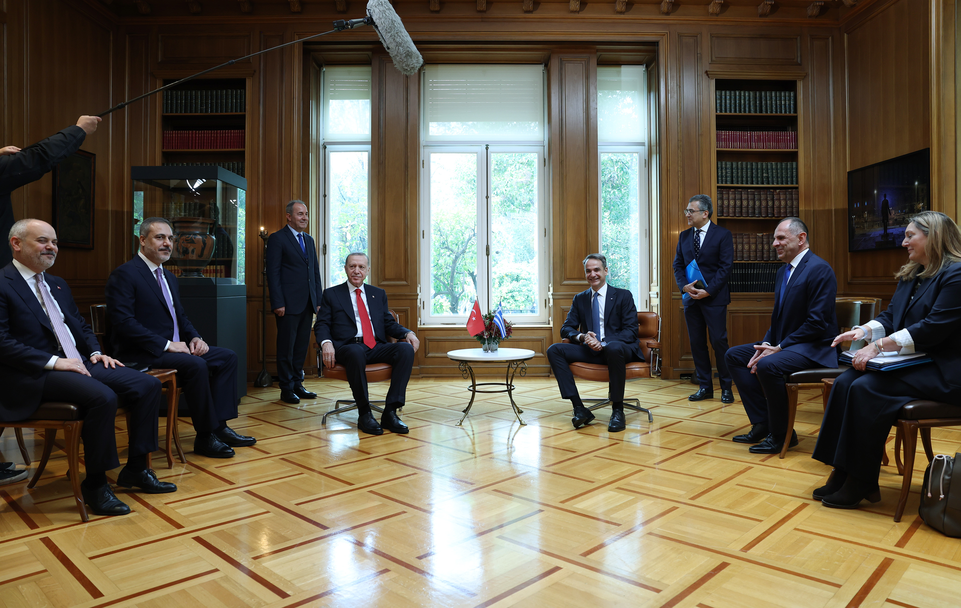 Cumhurbaşkanı Recep Tayyip Erdoğan, Türkiye-Yunanistan Yüksek Düzeyli İşbirliği Konseyi'nin beşinci toplantısı kapsamında resmî ziyarette bulunduğu Yunanistan'da, Başbakan Kiryakos Miçotakis'i kabul etti.