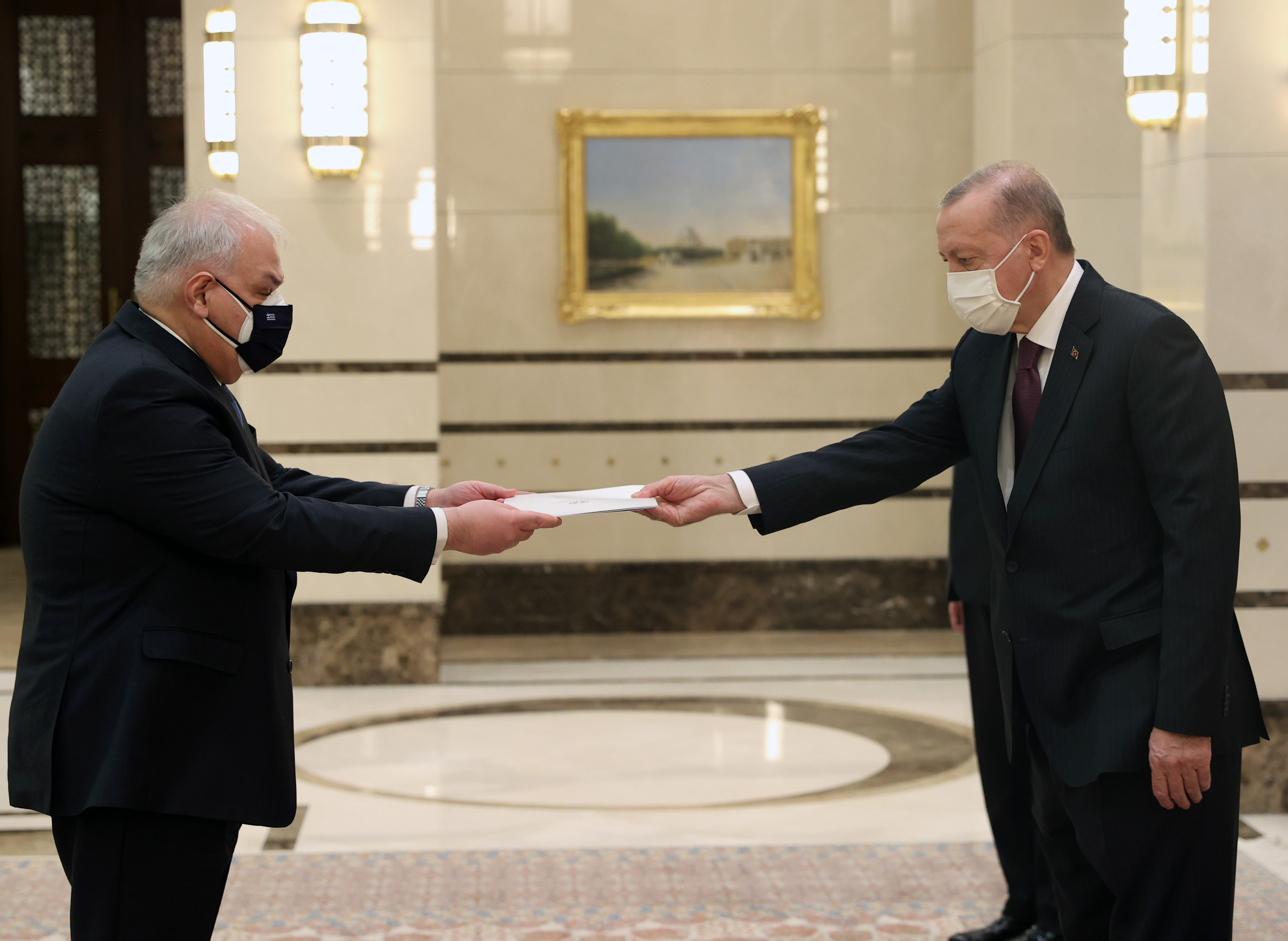 Cumhurbaşkanı Erdoğan, Yunanistan'ın Ankara Büyükelçisi Christodoulos Lazaris ve El Salvador’un Ankara Büyükelçisi Hector Enrique Jaime Calderon'u kabul etti.