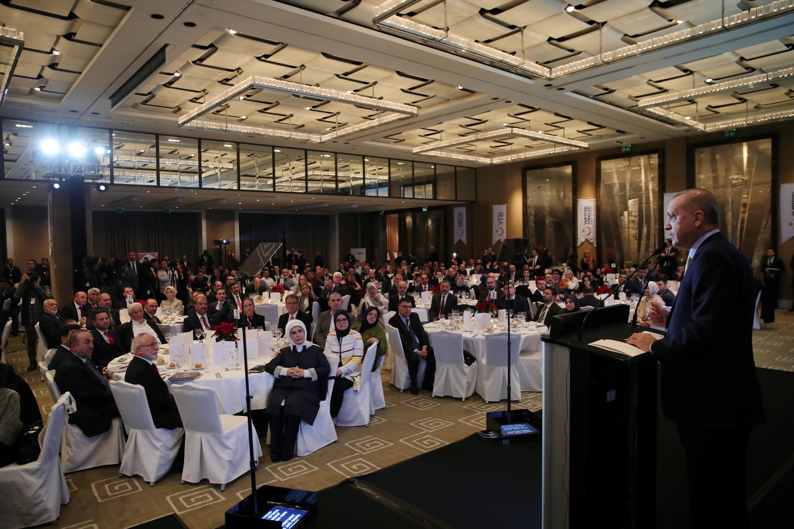 Münhasıran yurt dışında yaşayan vatandaşların sorunlarıyla hemhal olmak üzere Yurtdışı Türkler ve Akraba Topluluklar Başkanlığını kurduklarını, Türk dilinin ve kültürünün yaygınlaştırılması, genç nesillere aktarılması amacıyla da dünyanın her yerinde Yunus Emre enstitüleri açtıklarını anlatan Erdoğan, dünya çapında büyükelçilikler ve konsoloslukların sayısını artırarak, vatandaşların devletine erişimini kolaylaştırdıklarını vurguladı.