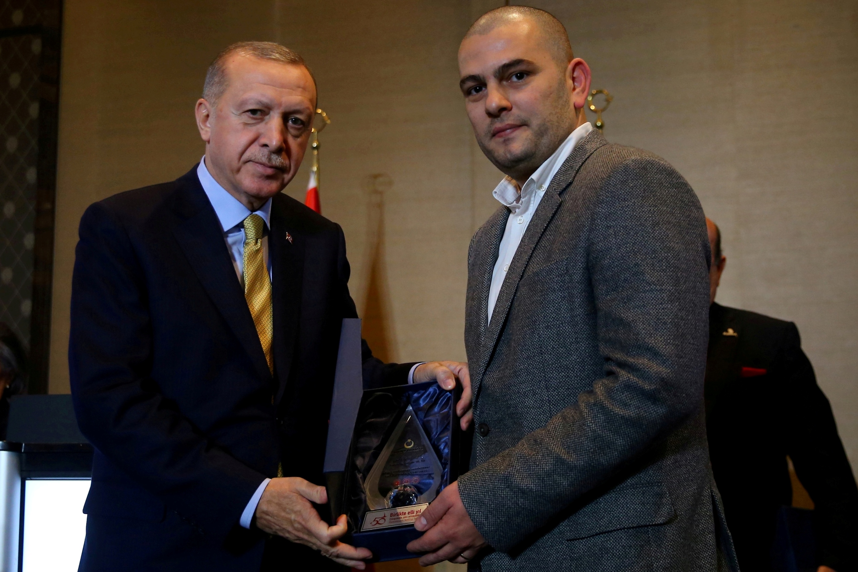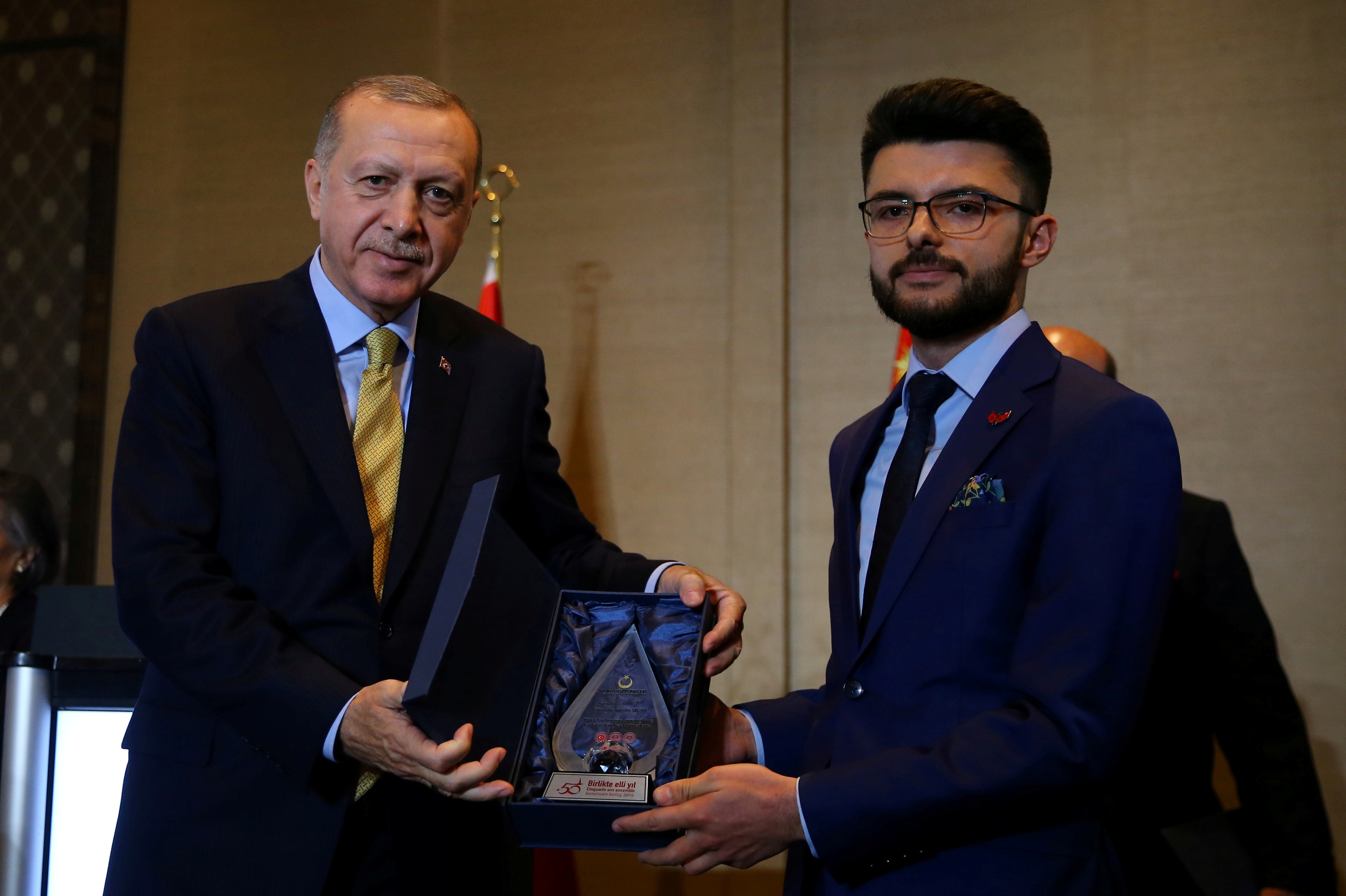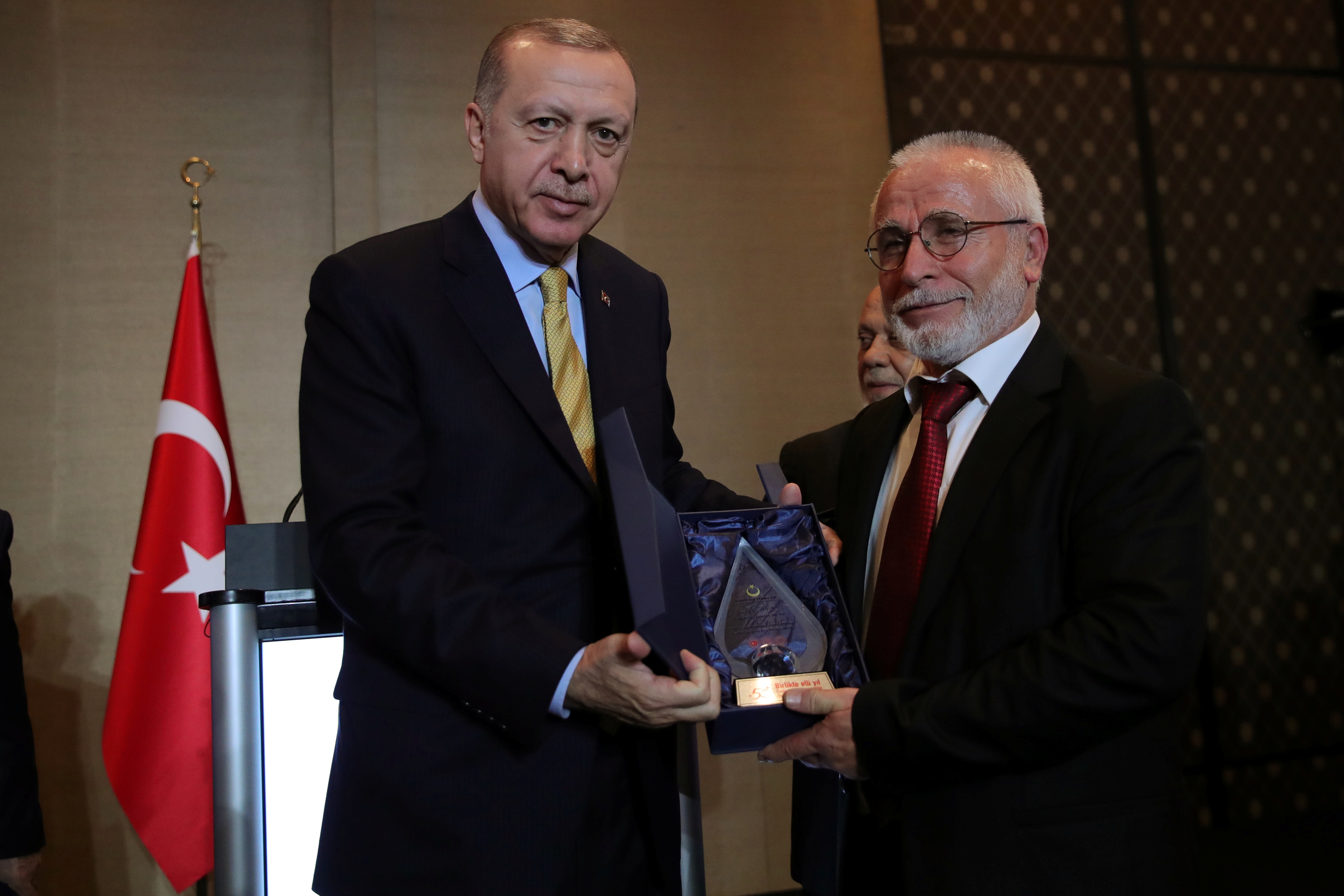 "Hiç şüphesiz bu noktalara kolay gelmediniz ve hepsinden öte son 50 yılda elde ettiğimiz her başarının arkasında her günü acıyla hasretle kimi zaman dışlanmakla örülmüş çok büyük bir mücadele vardır. Az önce izlediğimiz belgeselde bunların bir kısmına şahit olduk. 46 yıldır burada bulunan Cem Karatekin kendi hayat hikâyesini, mücadelesini bizimle paylaştı. Başardığımız her şeyi önce Allah'ın yardımına sonra emeğimize, gayretimize, alın terimize borçluyuz.