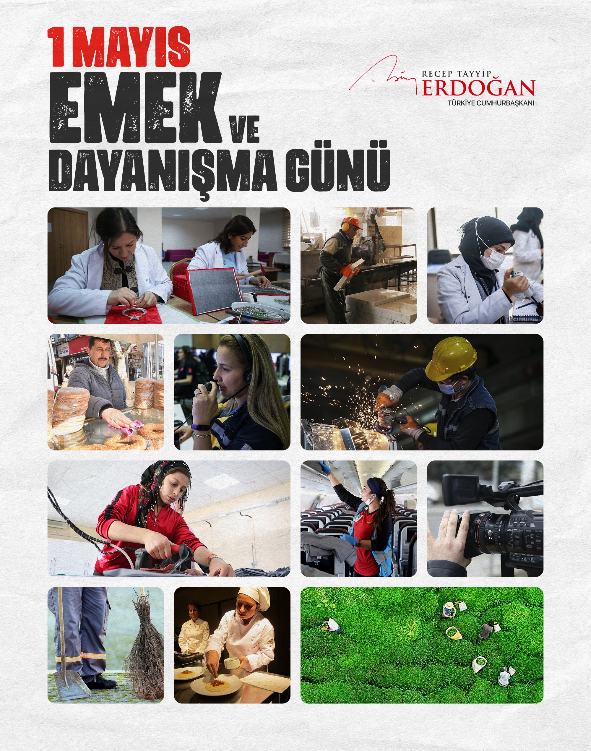 Cumhurbaşkanı Recep Tayyip Erdoğan, 1 Mayıs Emek ve Dayanışma Günü dolayısıyla sosyal medya hesabından bir mesaj yayımladı.