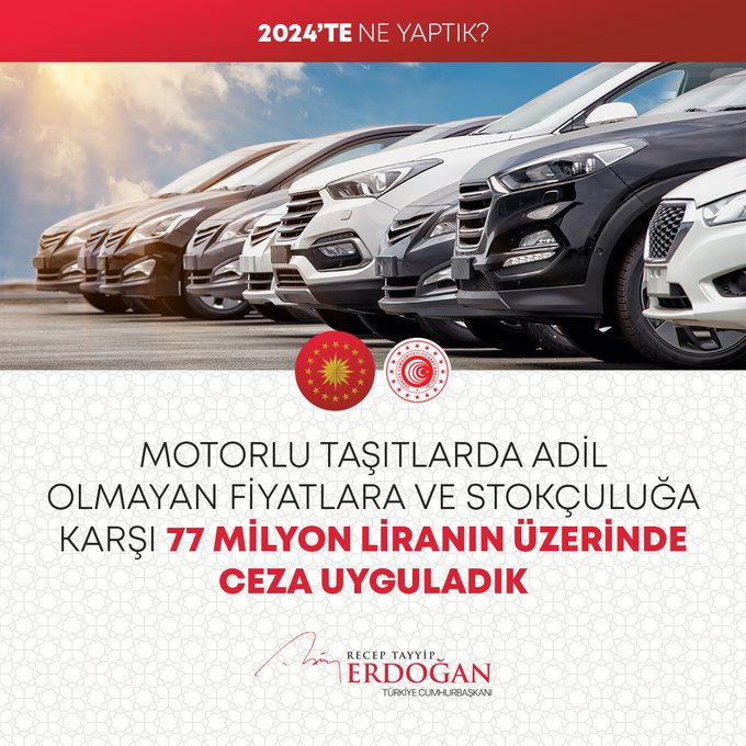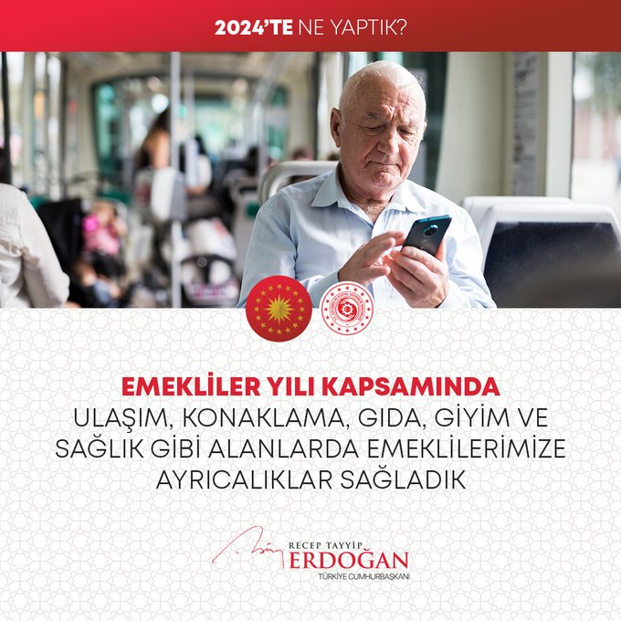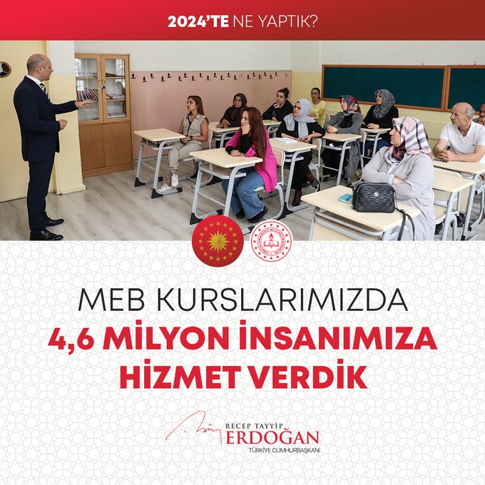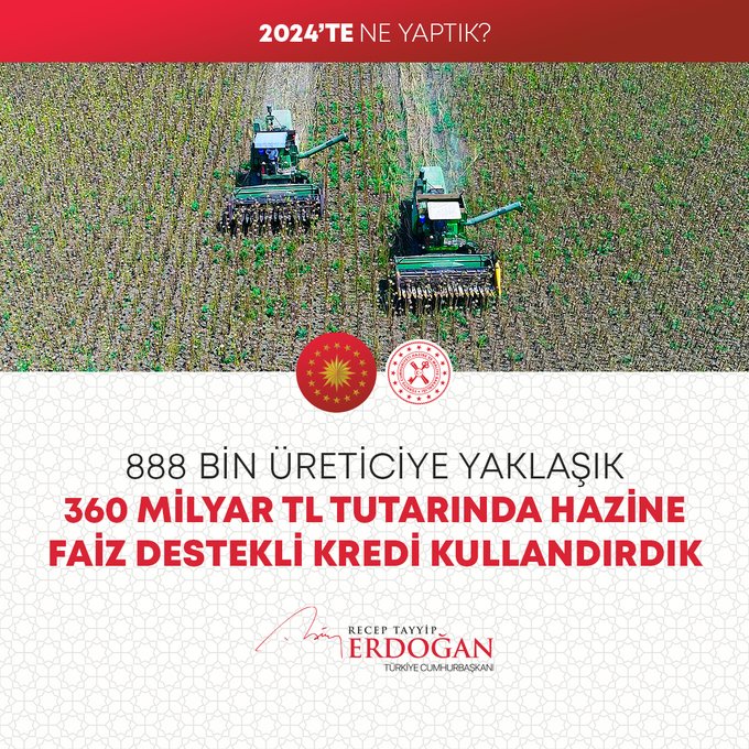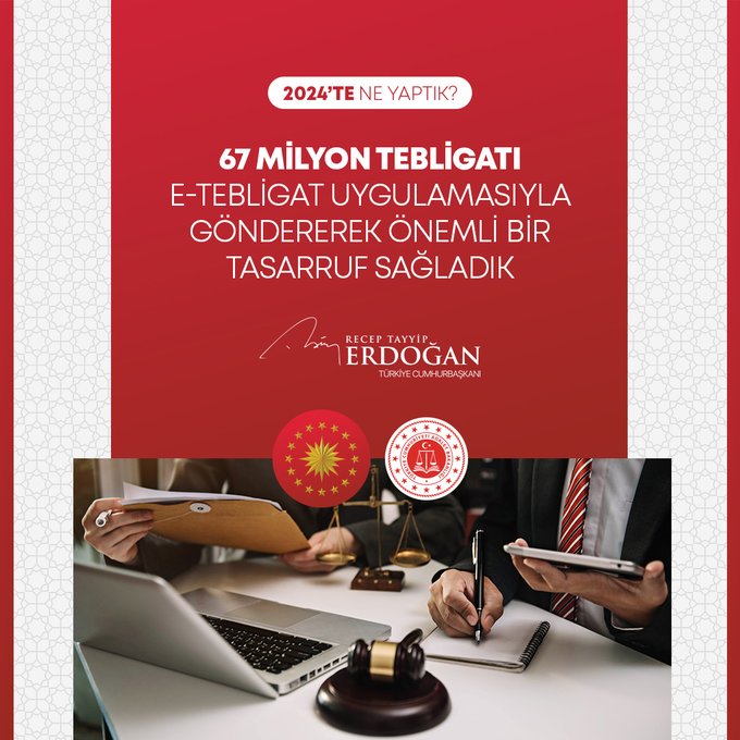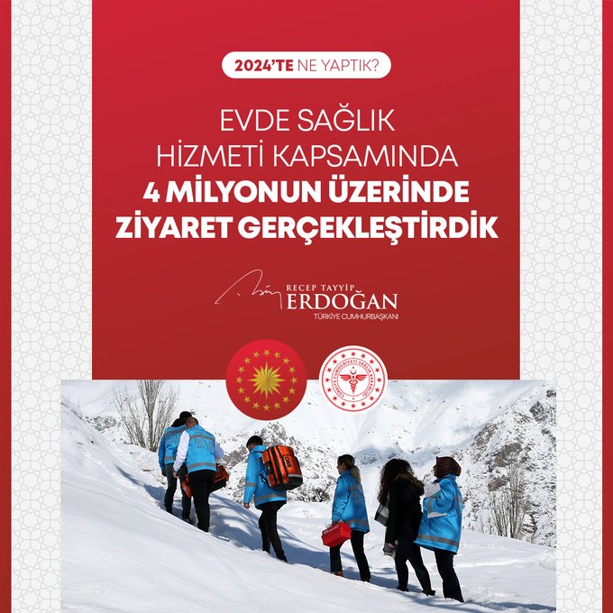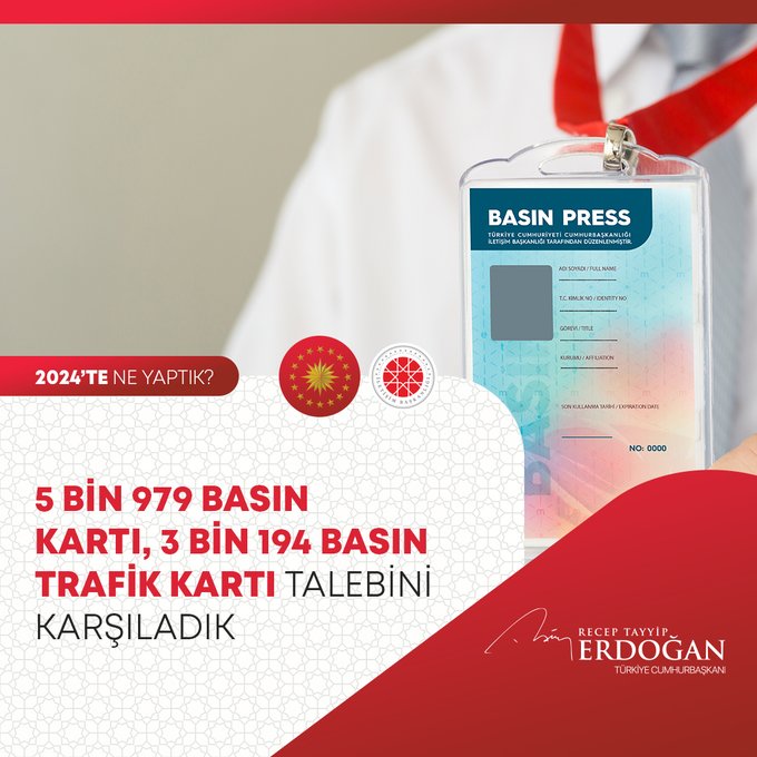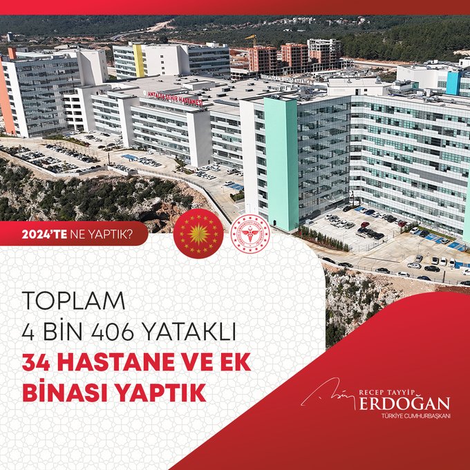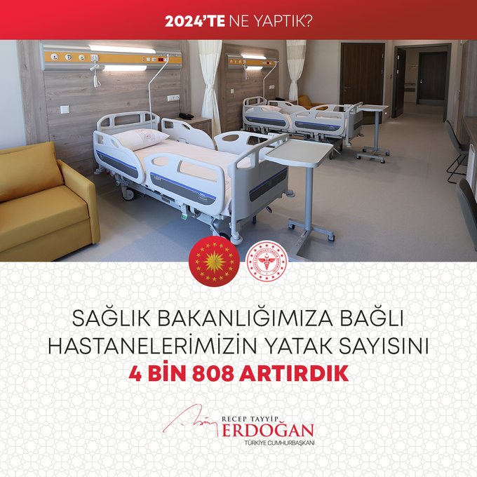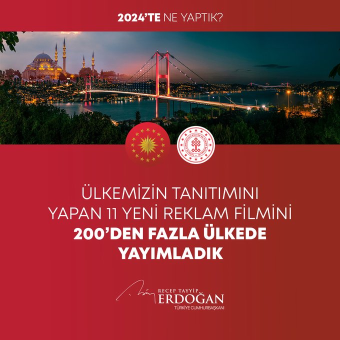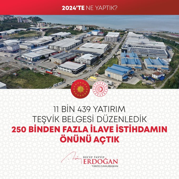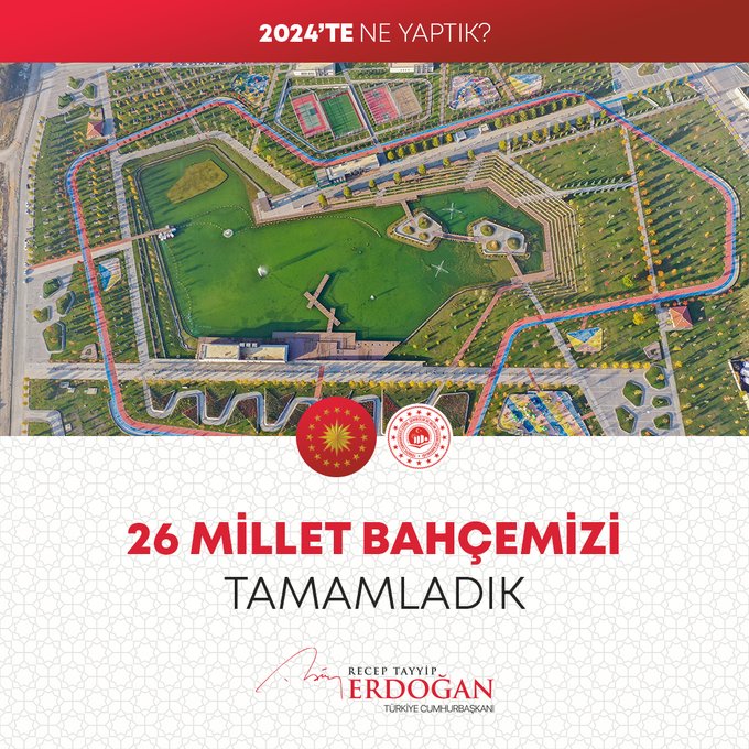 Cumhurbaşkanı Recep Tayyip Erdoğan, 2024 Yılının değerlendirmesini yaptığı sosyal medya paylaşımında millete hizmet yolunda durmadan, dinlenmeden çalıştıklarını, ülkeye her alanda çok önemli eserler, hizmetler, projeler, yatırımlar kazandırdıklarını vurguladı.