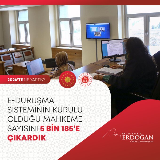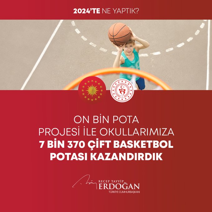 "Yurt dışı uçuş noktamızı 349'a, uçulan ülke sayısını 131'e yükselttik. Yapay Zekâ Temelli 100 Akıllı Kütüphane Projemizi başlattık. Toplam 28 askerî anlaşma imzaladık, dost ve müttefiklerimizle iş birliğimizi güçlendirdik. Teknoparklarımızda inovasyon odaklı çalışan firma sayısını 11 binin üzerine çıkardık. Öğretmen Bilişim Ağı (ÖBA) platformundaki 57 çevrimiçi kursa 297 bin 307 öğretmenimizin katılımını sağladık. Yaklaşık 3 yıllık yoğun bir çabanın sonunda İstanbul Basketbol Gelişim Merkezini gençlerimizin ve basketbol severlerin hizmetine sunduk. Dijital Vergi Dairesi uygulamasını hayata geçirdik, e-Tebligat uygulaması kapsamında 9,5 milyar lira tasarruf sağladık."