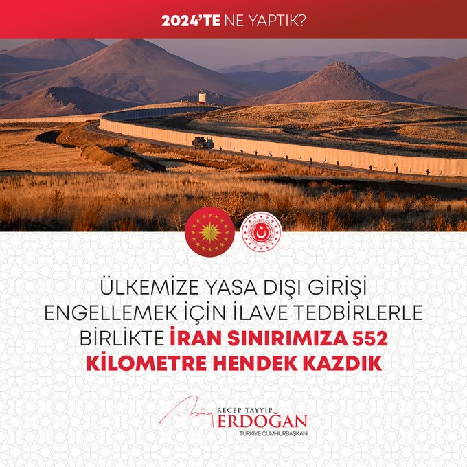 Ülkeye yasa dışı girişleri engellemek için İran sınırına 552 kilometre hendek kazıldığını aktaran Cumhurbaşkanı Erdoğan, şu bilgileri paylaştı: