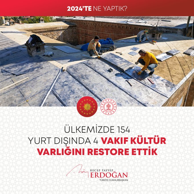Türkiye'de 154, yurt dışında 4 vakıf kültür varlığının restorasyonunu tamamladıkları bildiren Cumhurbaşkanı Erdoğan, şöyle devam etti: