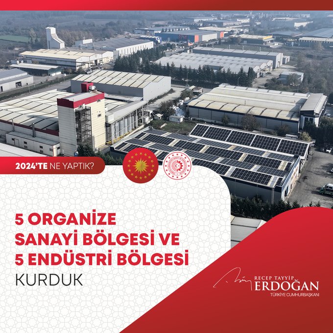"Deprem bölgemizde bir taraftan yıkılanın yerine daha iyisini, daha güzelini, daha sağlamını inşa ederken diğer yandan kentsel dönüşüm çalışmalarımıza da hız kesmeden devam ettik. Karadeniz'deki Sakarya Gaz Sahamızda 6,8 milyar metreküple günlük üretim rekoru kırdık, toplam doğal gaz üretimimizde 7,8 milyar metreküpe ulaştık. 5 organize sanayi bölgesi ve 5 endüstri bölgesi kurduk, planlı sanayi alanlarımızın büyüklüğüne 62,5 milyon metrekare ilave ettik. Dünya harp tarihinde yön değiştirici bir hamle olan Bayraktar Kızılelma insansız savaş uçağımızın ikinci prototipini gök vatanla buluşturduk, uçuş testlerini başarıyla tamamladık. Sinema sektörümüze 381,4 milyon liralık rekor seviyede destek sağladık. Yerli ve millî tohum kullanan üreticilerimize 1,3 milyar lira destek sağladık. Türkiye’nin ilk yerli ve milli düşük frekans aktif sonar sistemi DÜFAS'ı geliştirdik."