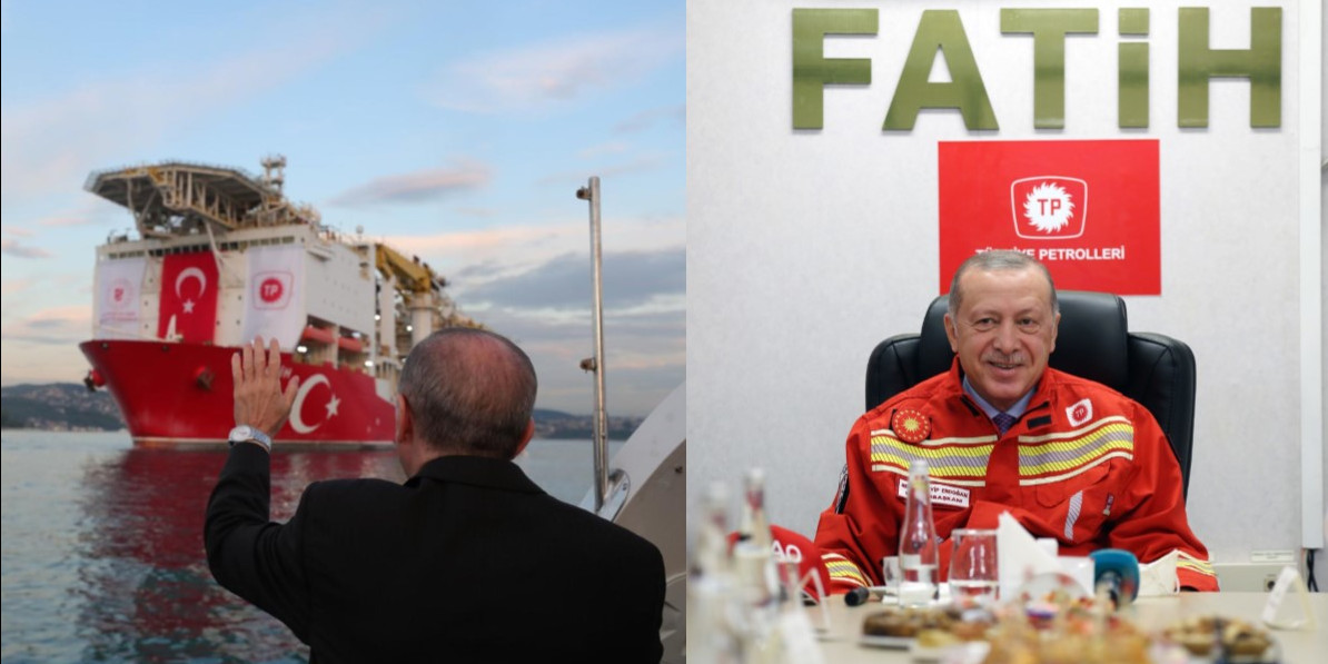 Cumhurbaşkanı Erdoğan, Twitter ve Instagram hesaplarında, "Milli Enerjide Yeni Müjde" etiketiyle yaptığı paylaşımda, 29 Mayıs'ta Fatih sondaj gemisini Karadeniz'e uğurlaması ve bugün gemiye yaptığı ziyaret sırasında çekilen iki fotoğraf karesine yer verdi.