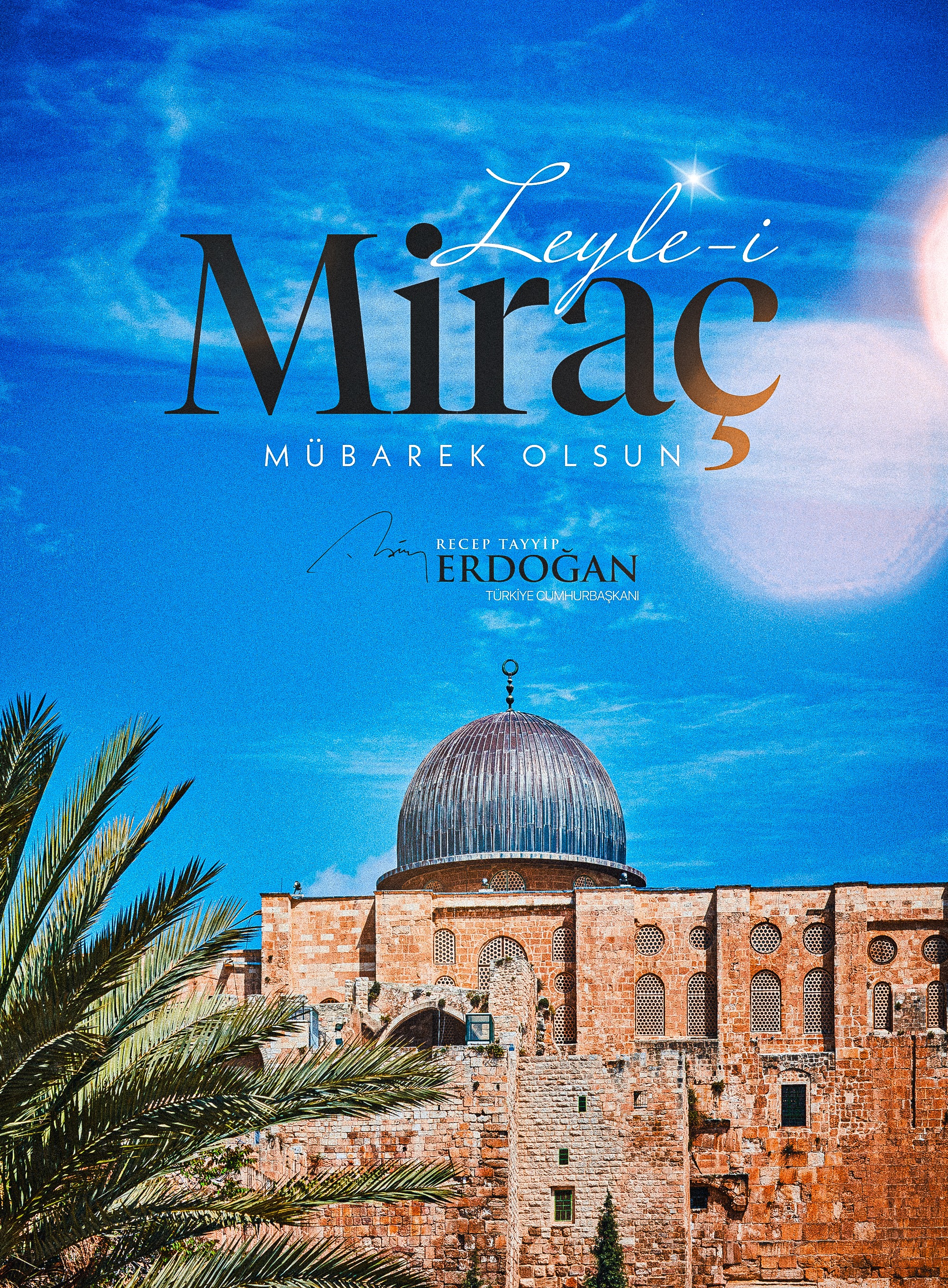 Cumhurbaşkanı Recep Tayyip Erdoğan, sosyal medya hesabından Türk milletinin ve İslam âleminin Miraç Kandili'ni tebrik ettiği bir paylaşımda bulundu.